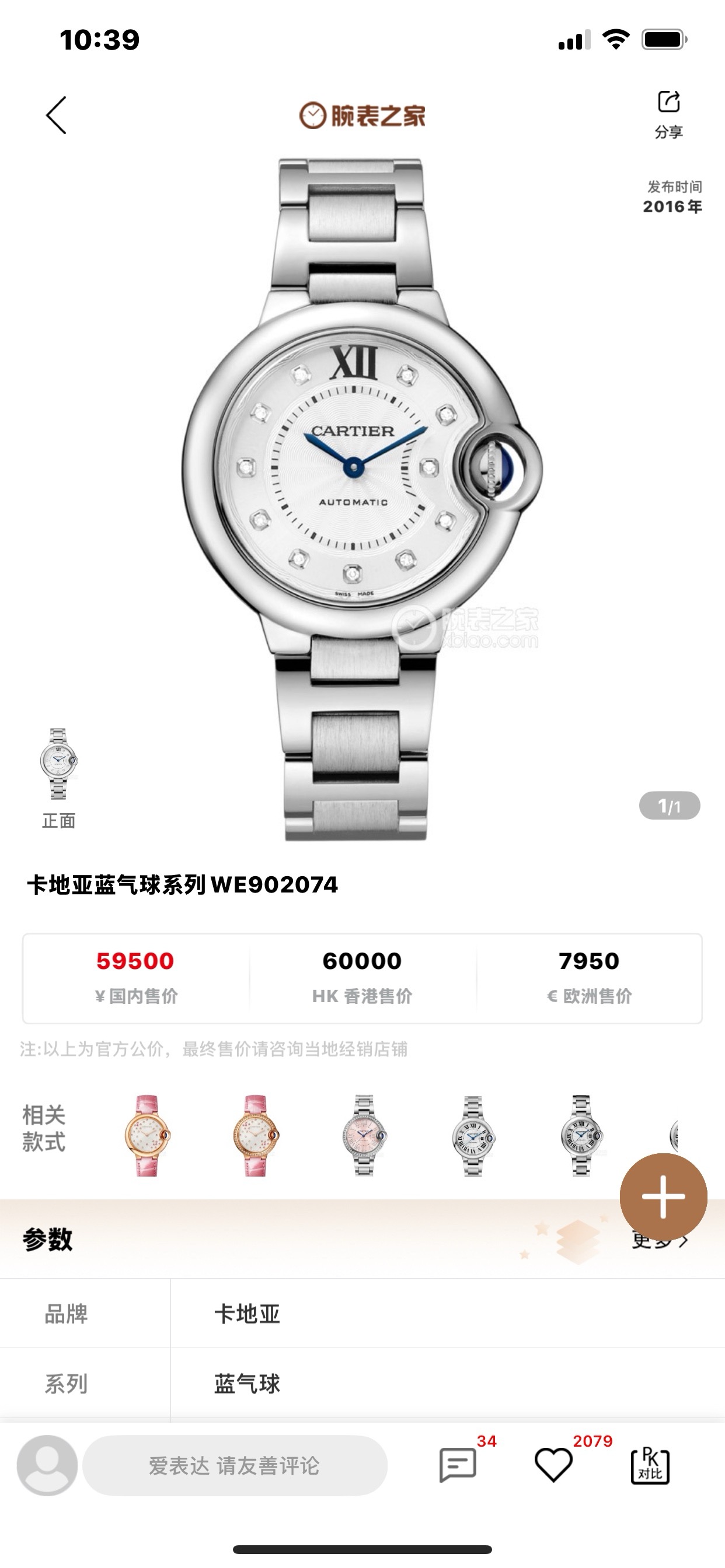 卡地亚蓝气球BALLON BLANCWE902074机械女性