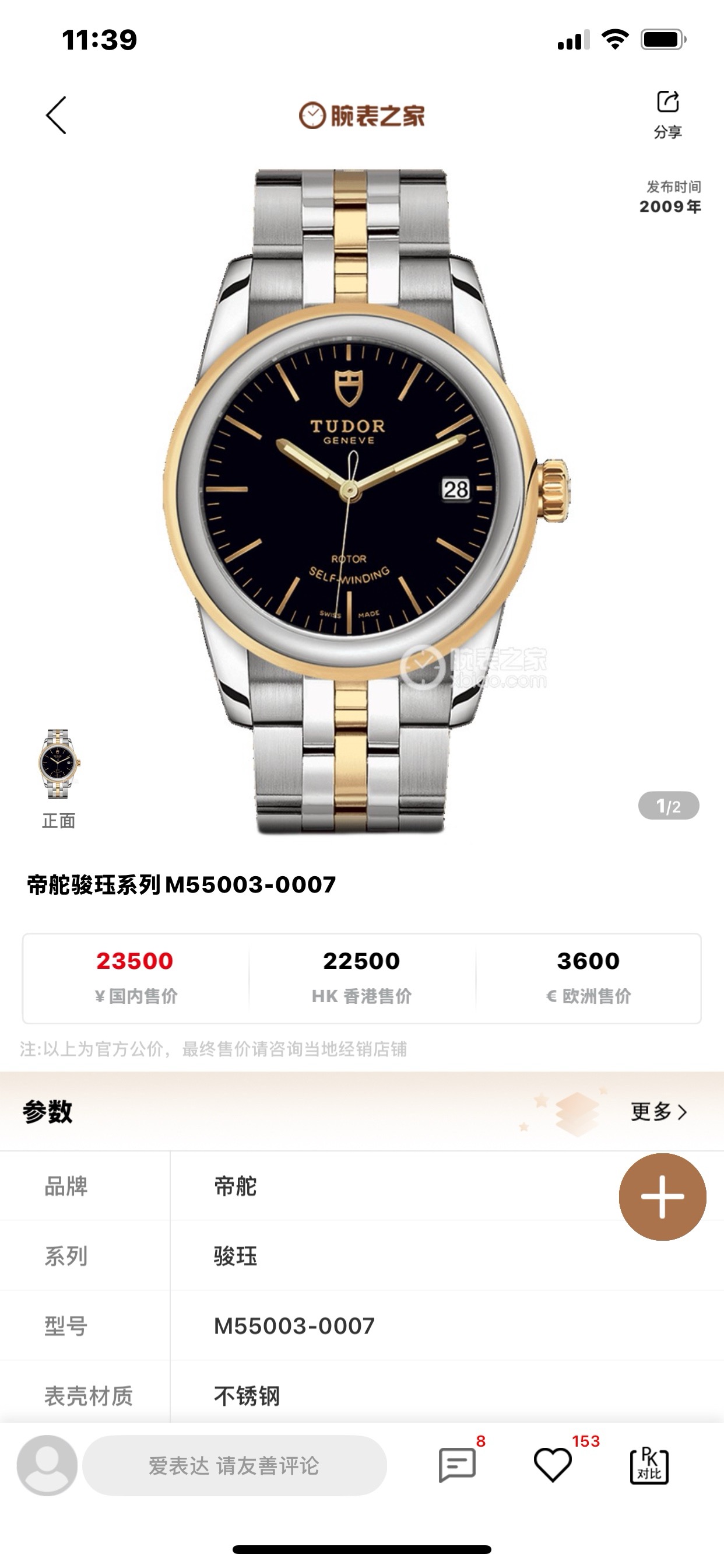 表冠材质:18K黄金旋入式上链表冠,饰以帝舵表标志