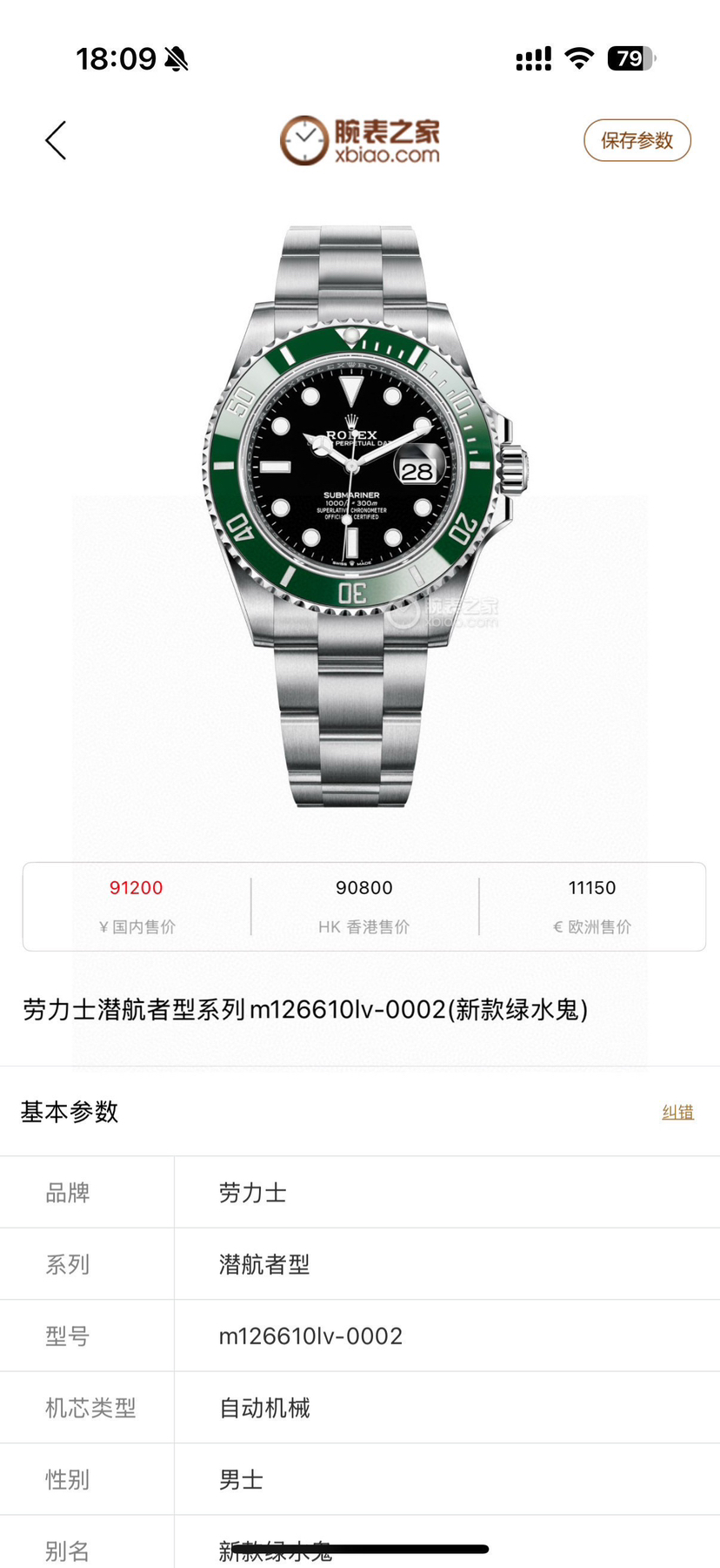 劳力士/Rolex 潜航者型 m126610lv-0002 自动机械 蚝式钢 41毫米 专柜价91200