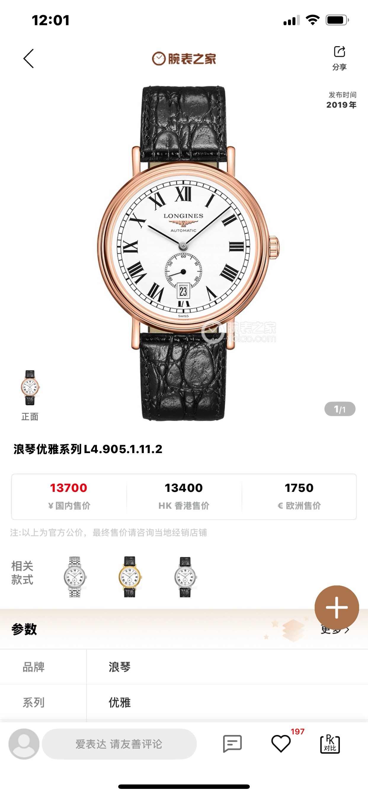 浪琴 新款镂空机芯 总重57.5克 表带后配