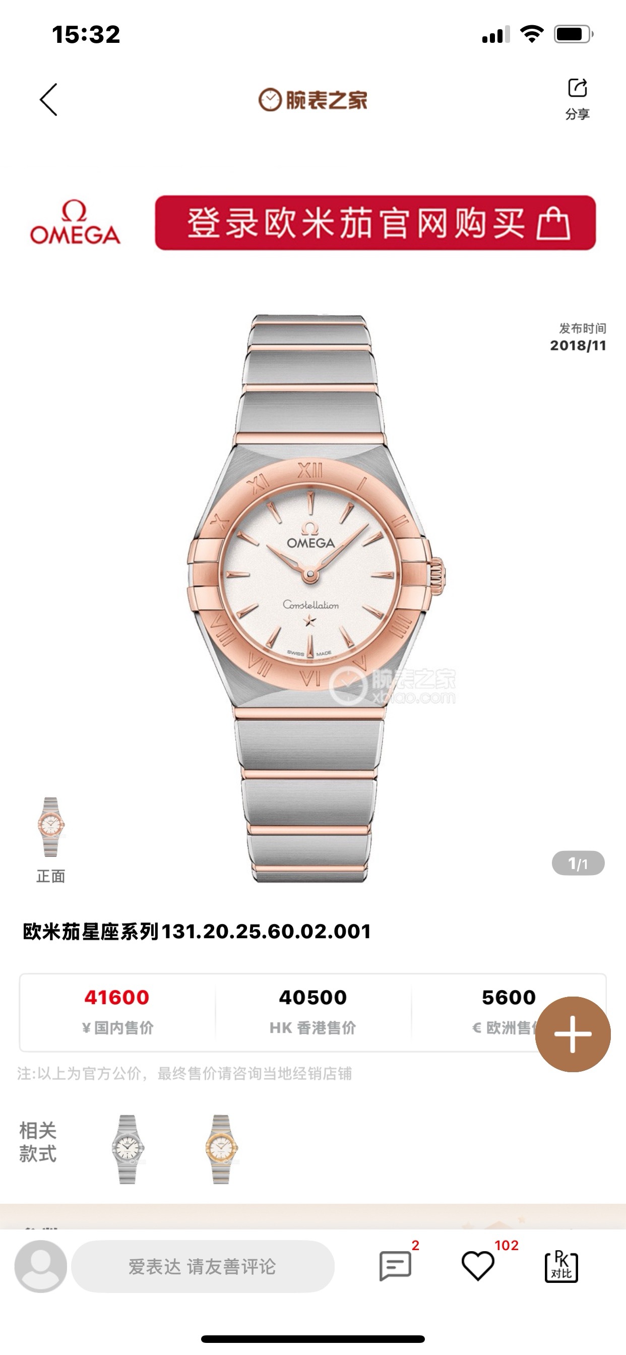 间玫瑰金 公价41600。9A03020XJ