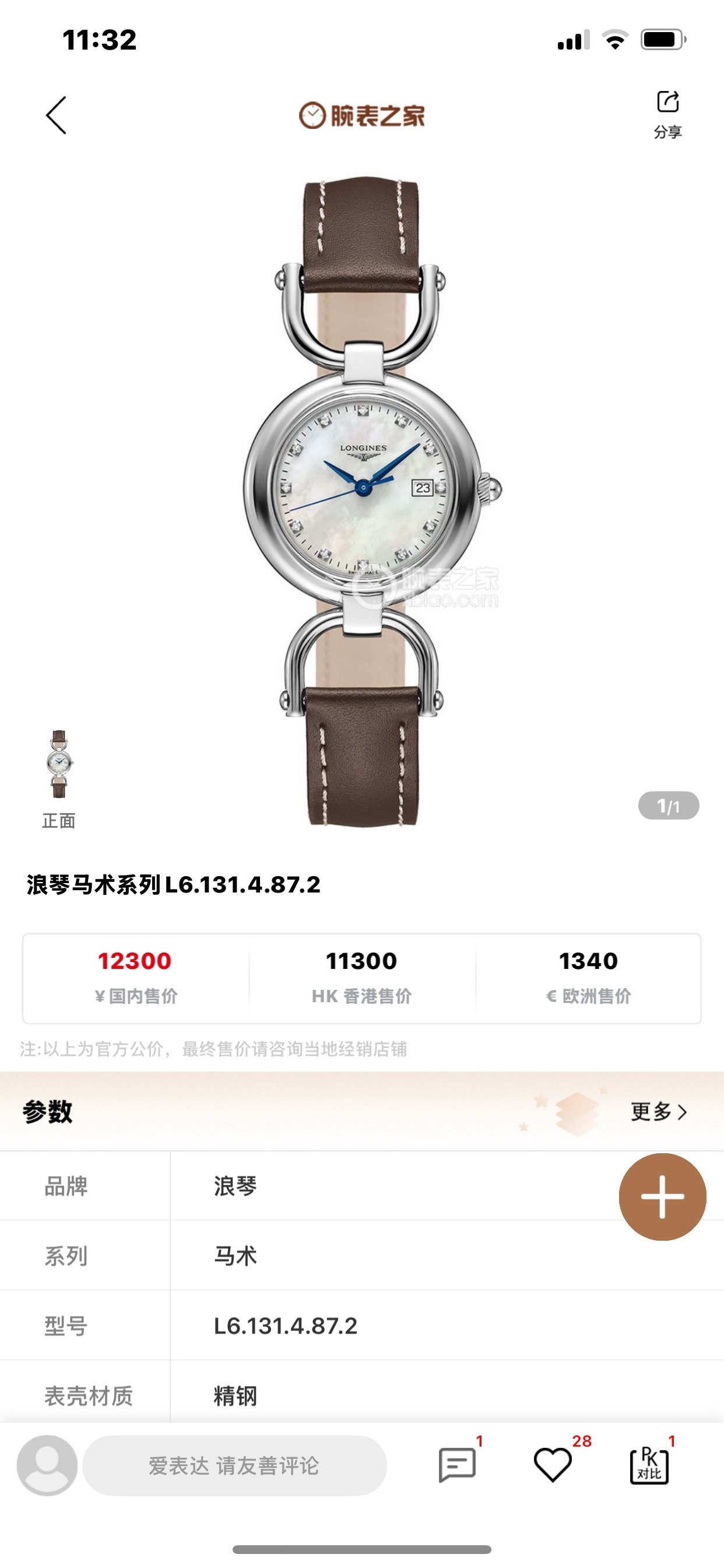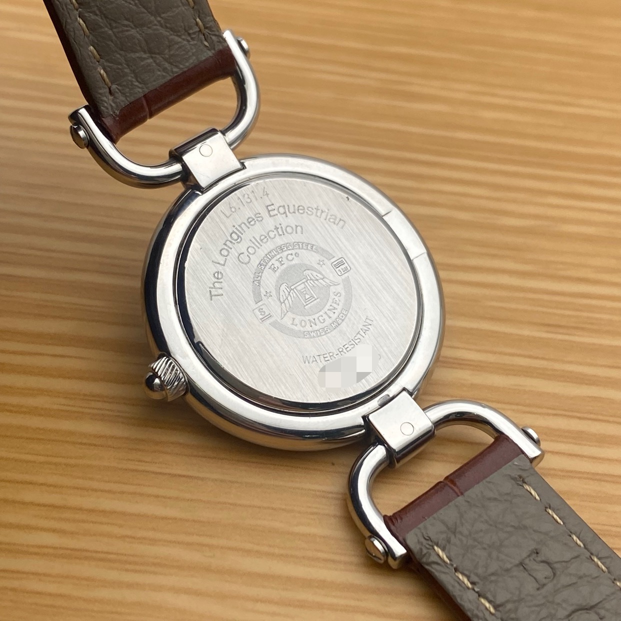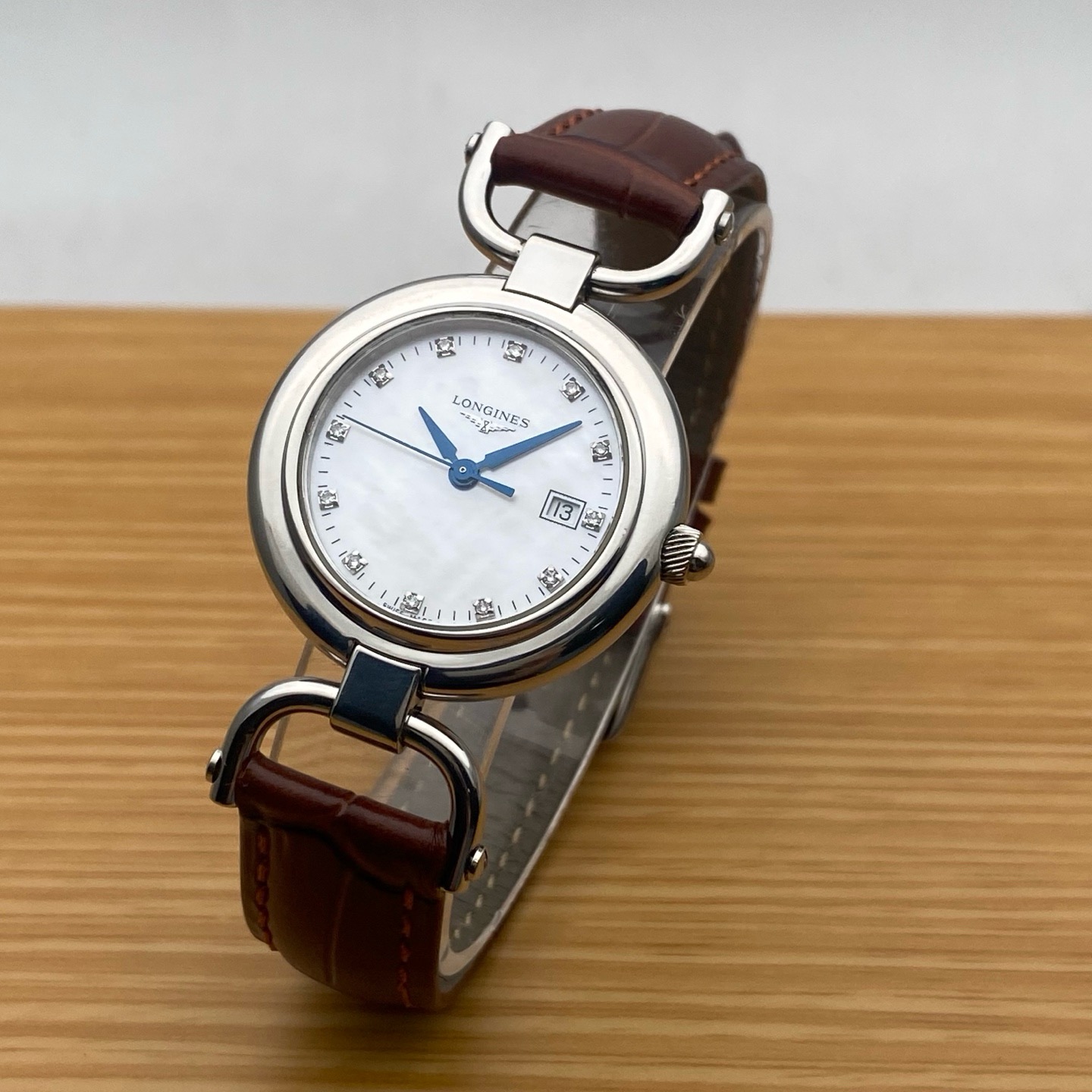 表盘材质:珍珠母贝,钻石时标,蓝钢指针,表盘镶嵌12颗顶级韦塞尔顿VS级钻石,总重0.055克拉。