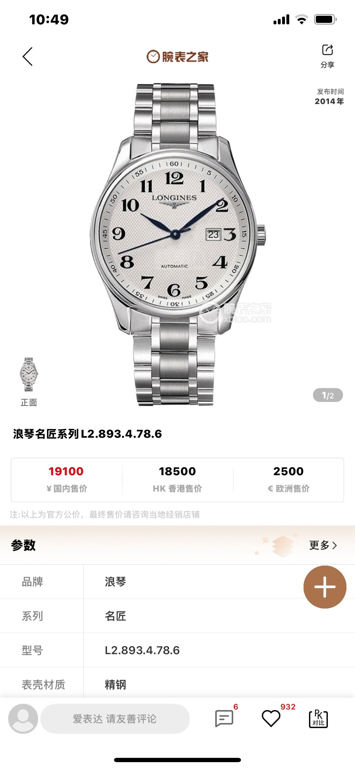 浪琴 22年购买全套 新款镂空机芯 总重133.12克