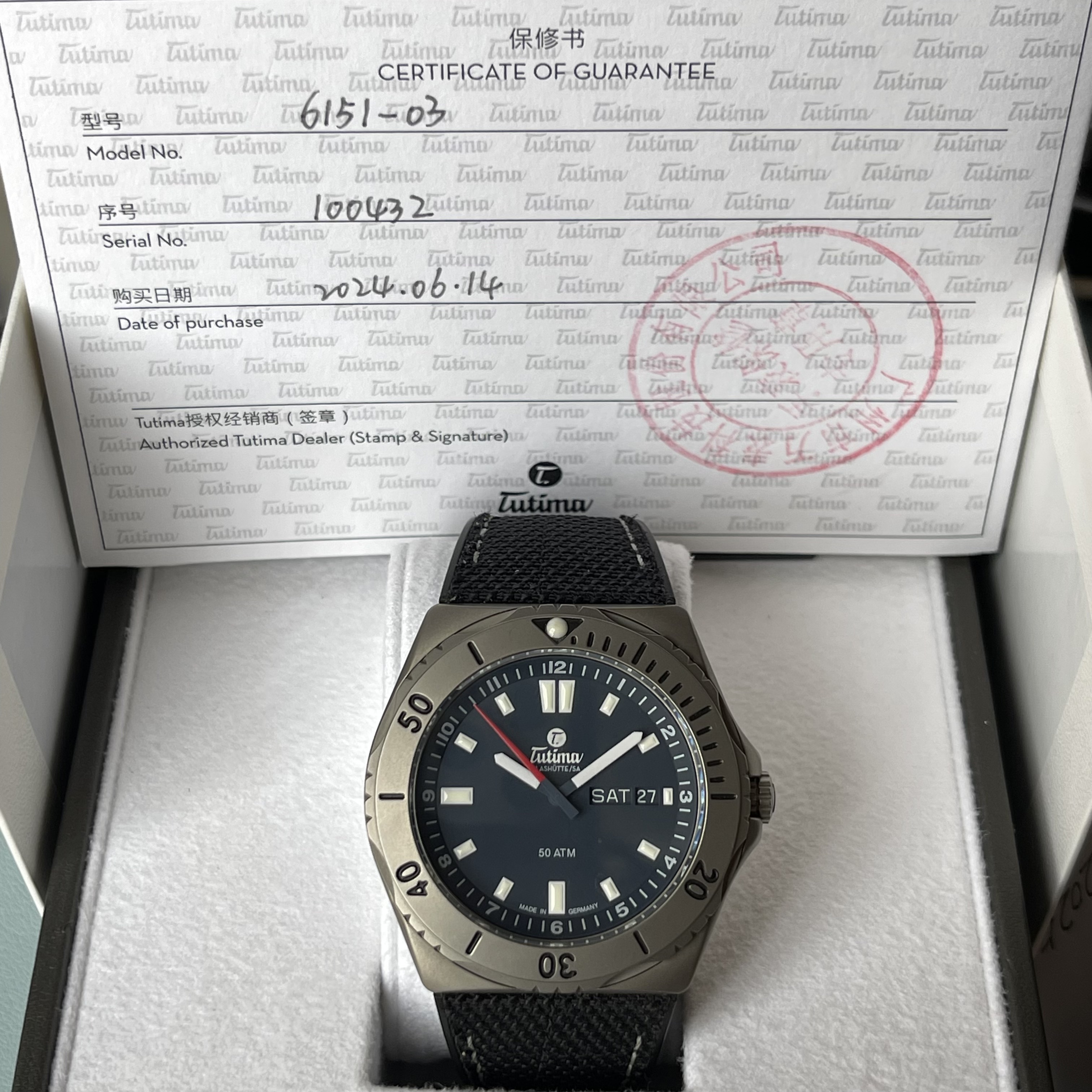 德国拓天马 TUTIMA-M2运动 Seven Seas纵横七海系列 6151-03 自动机械运动潜水男表,44mm,公价17100元,2024年全套