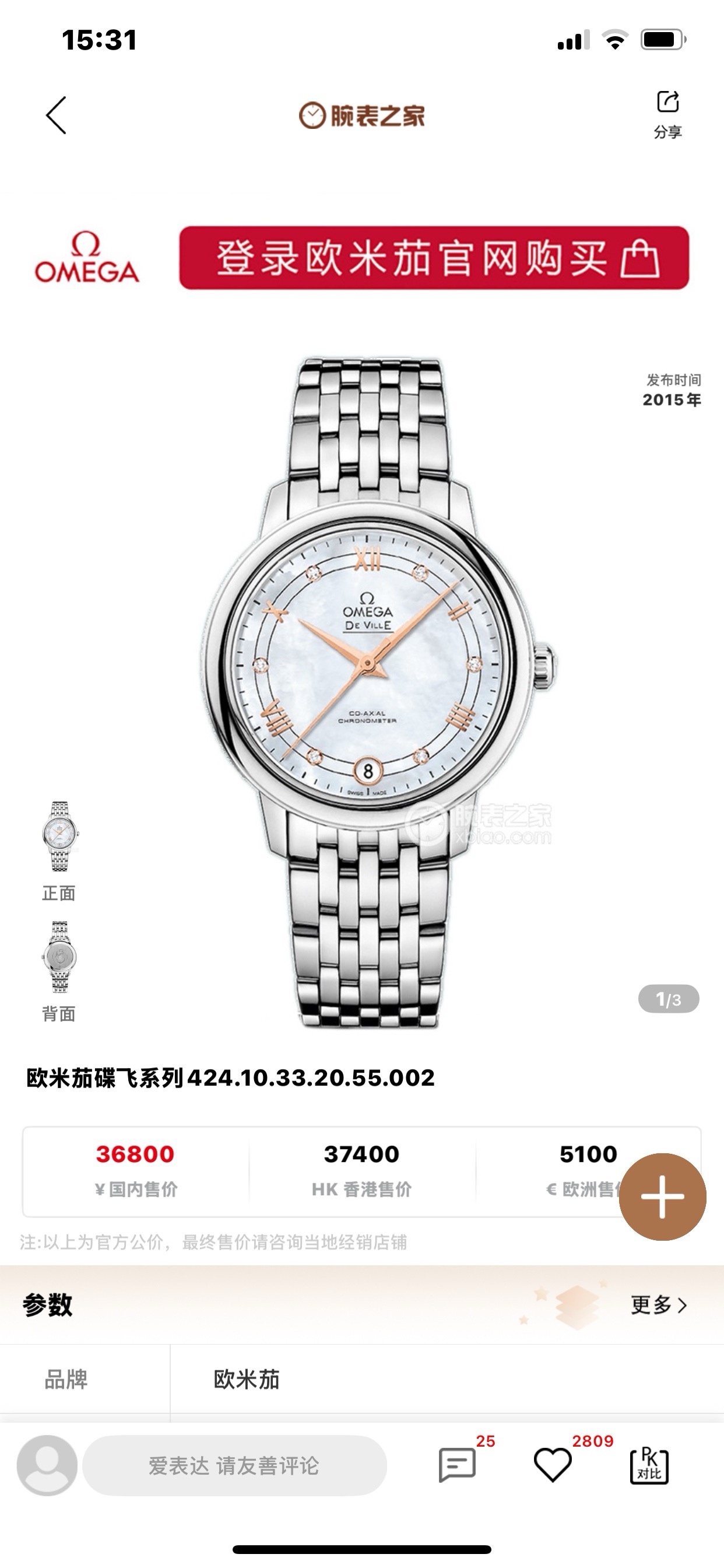 欧米茄碟飞424.10.33.20.55.002机械女性
