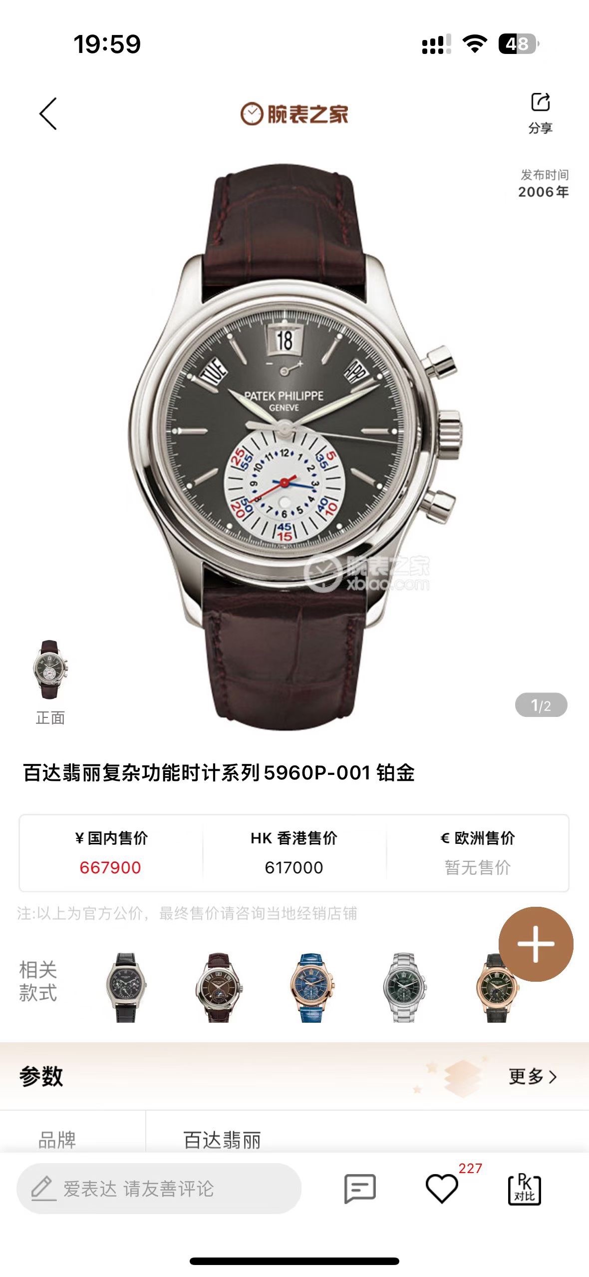 百达翡丽/Patek Philippe 复杂功能时计 5960P-001 自动机械 950铂金 40毫米 专柜价667900