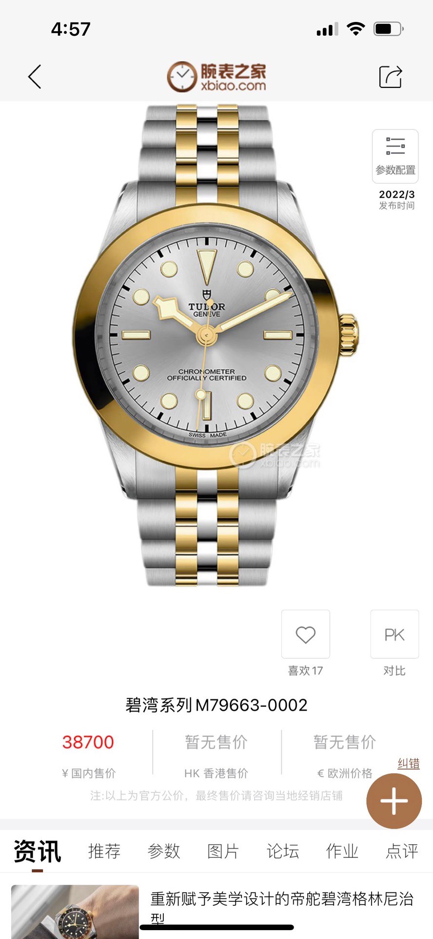 帝舵碧湾M79663-0002机械男性
