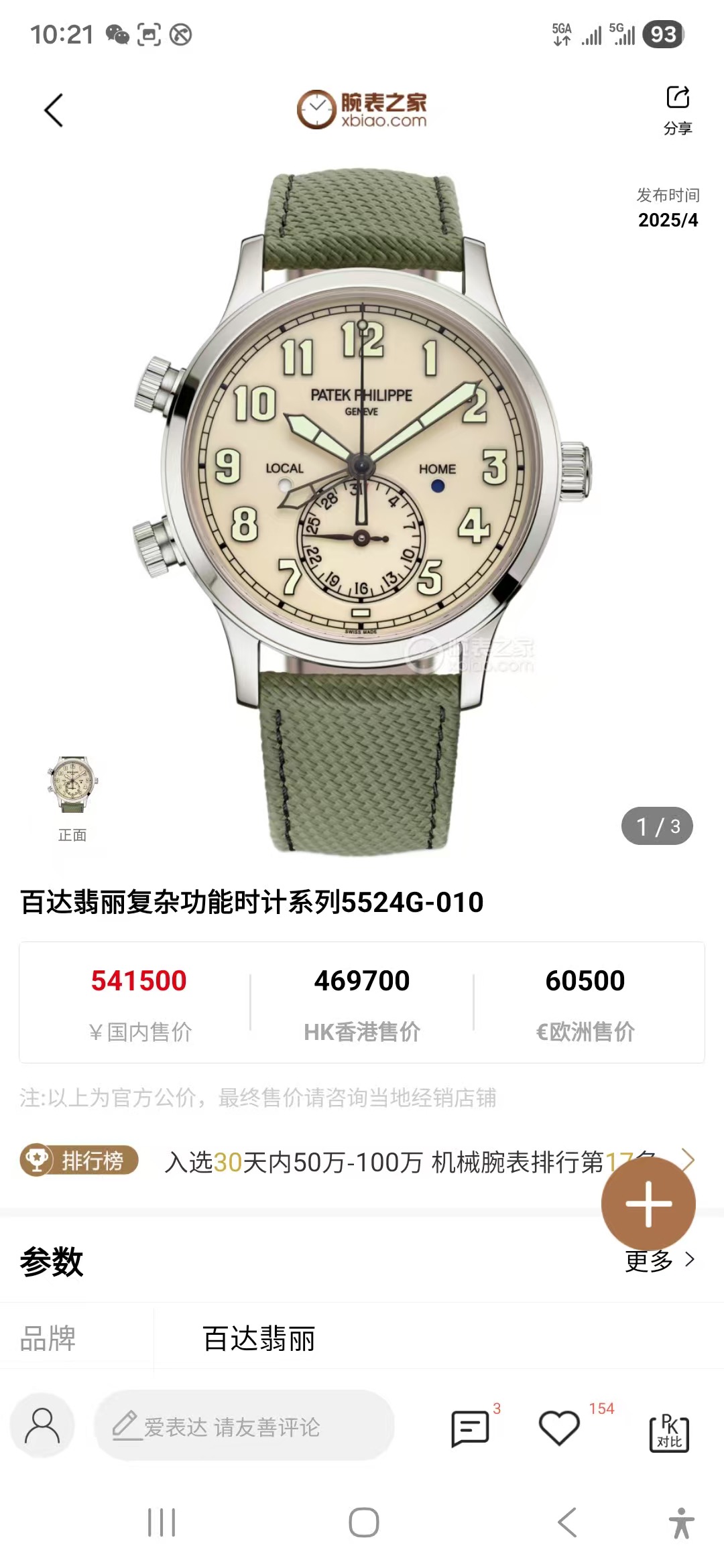 百达翡丽复杂功能计时腕表5524G-010机械男性
