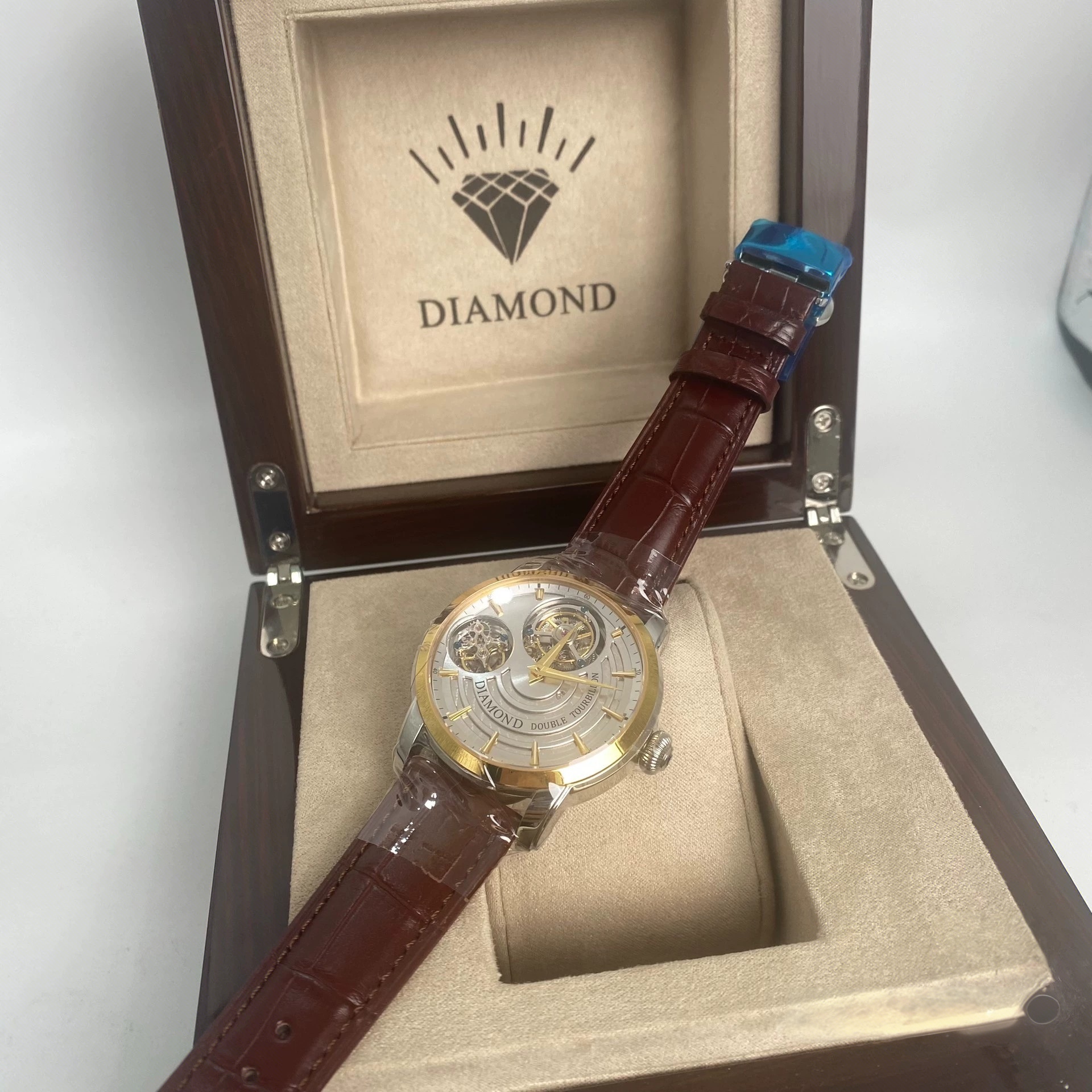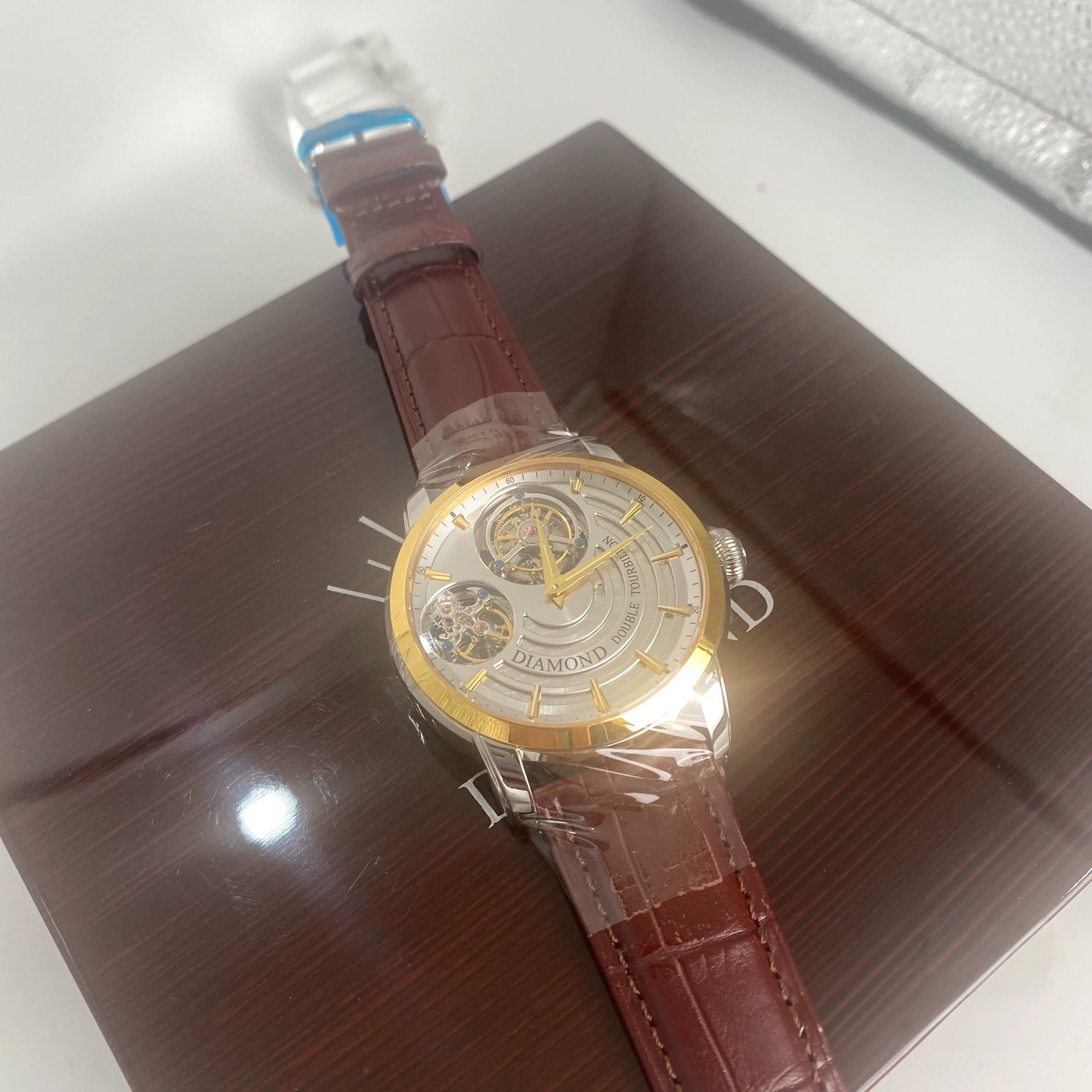 上海高端陀飞轮机械表,双飞轮设计超帅,自动机械机芯走时精准。配棕色真皮表带,专属定制礼盒全套附件。送礼自用都很棒。