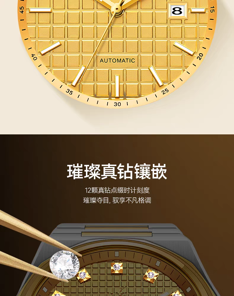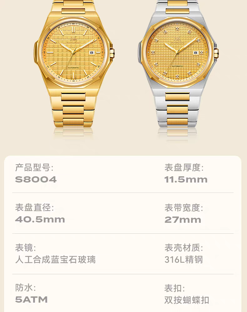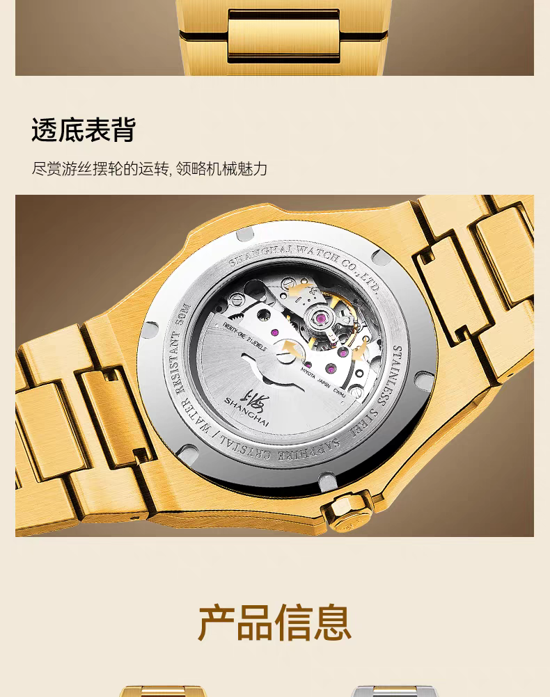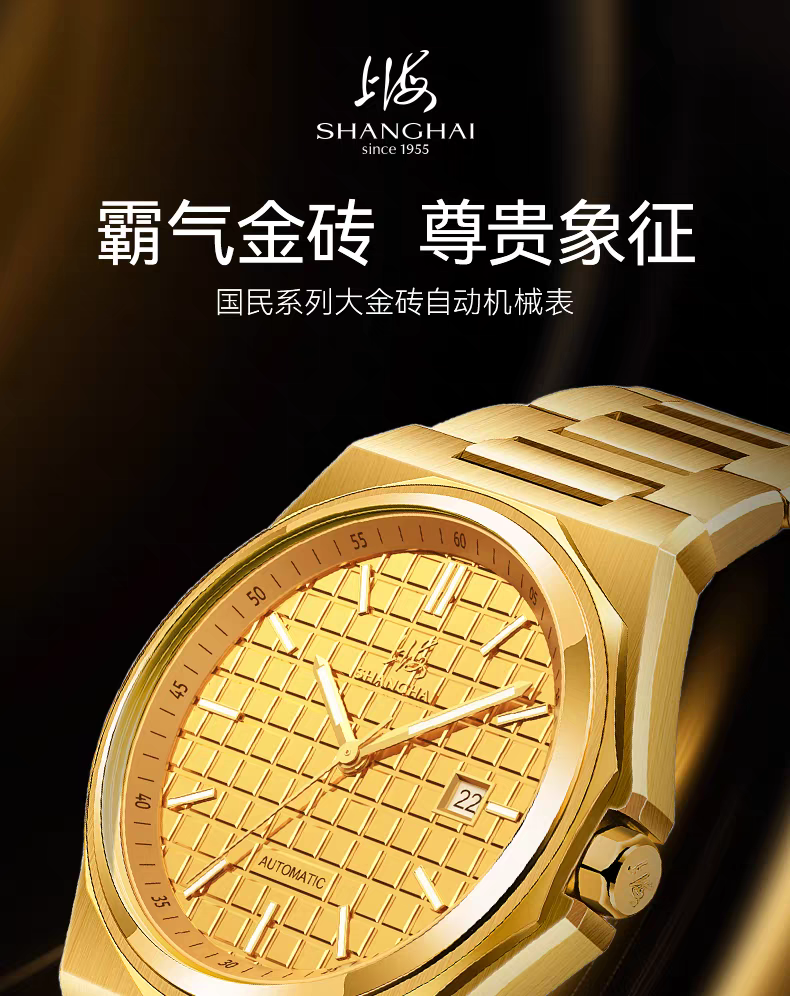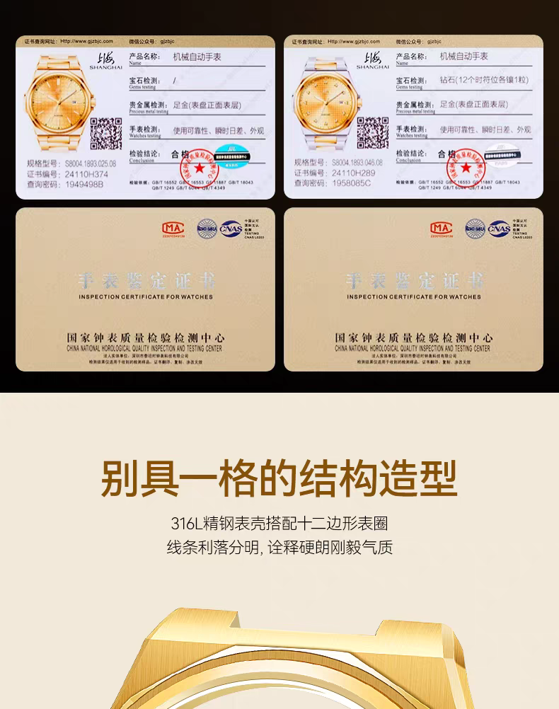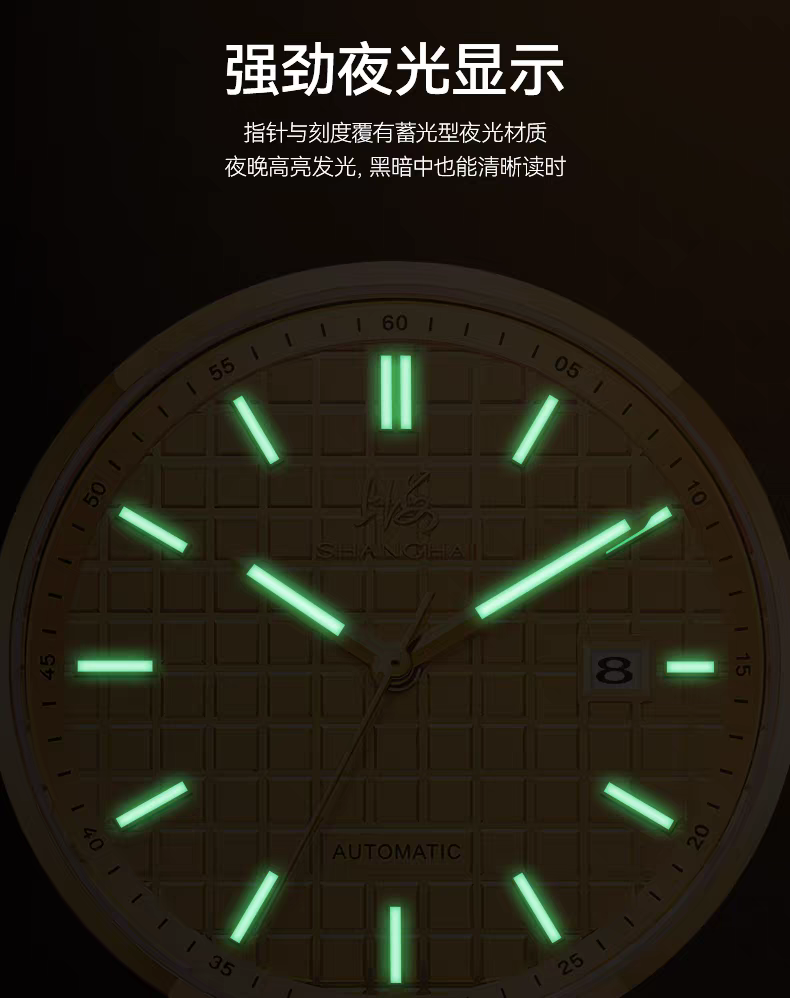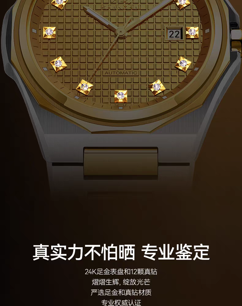 上海手表新款镶钻夜光表24k金表全自动机械腕表男款节日礼物8004