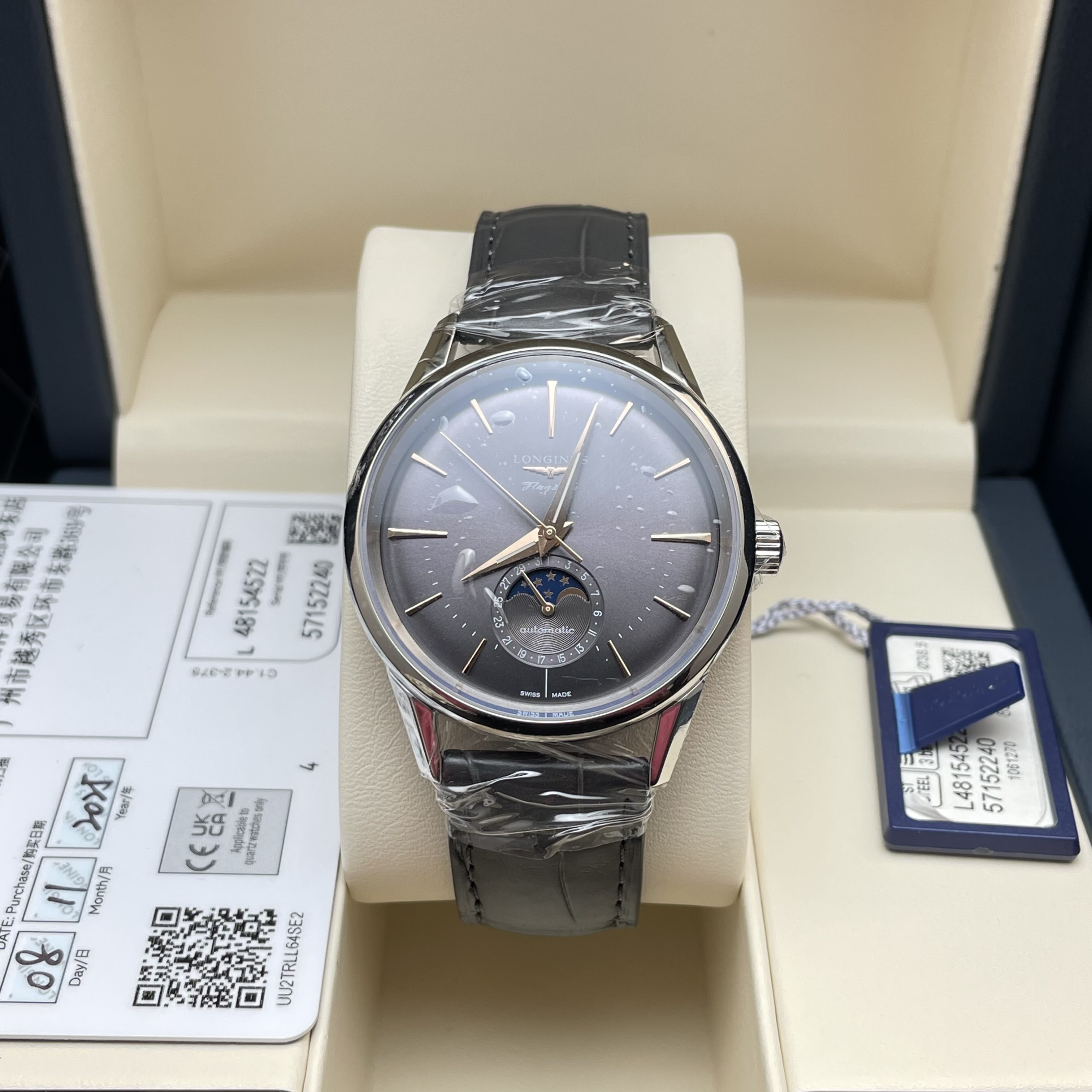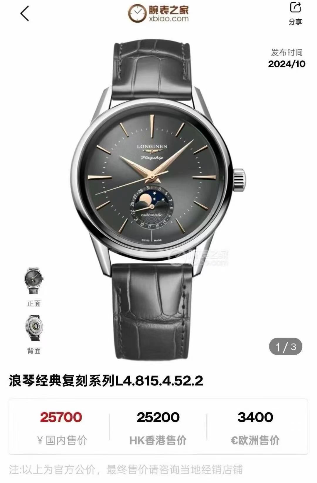 全新未使用品 Longines 浪琴 经典复刻系列L4.815.4.52.2,自动机械男表,表径38.5mm,月相显示,2025年全新全膜大全套,公价¥25700