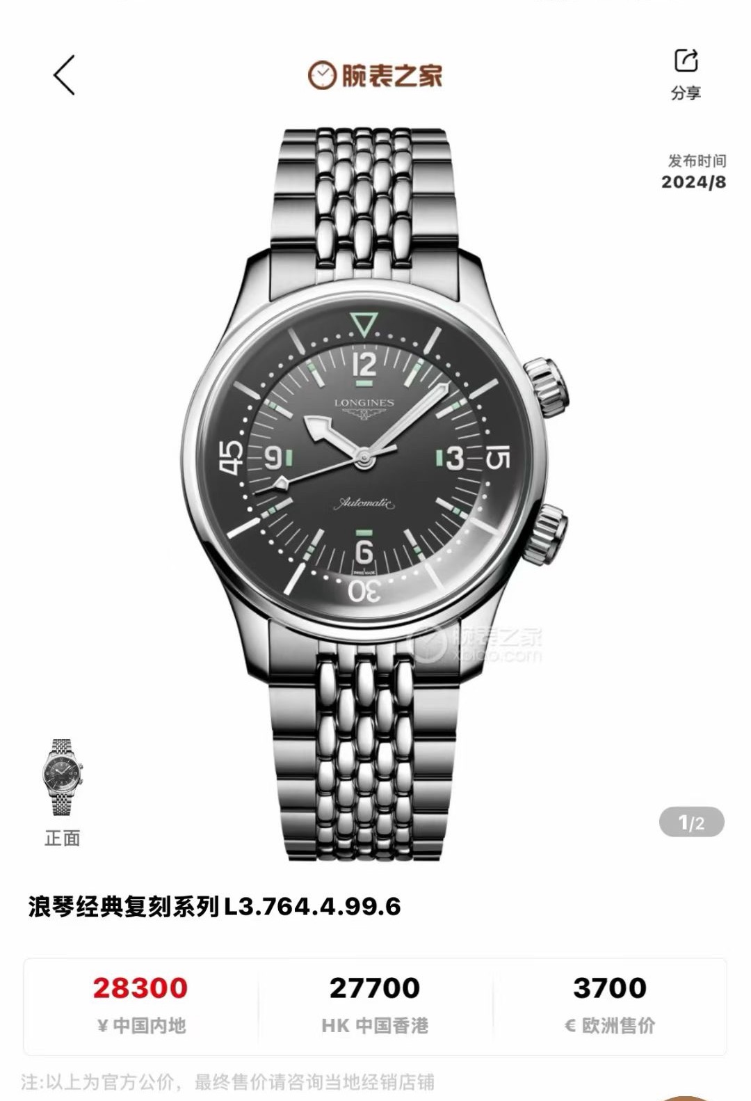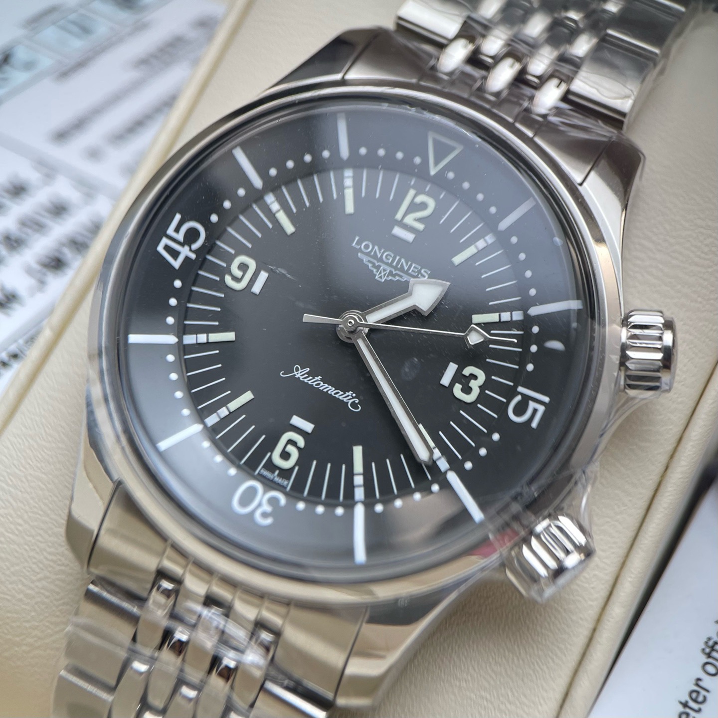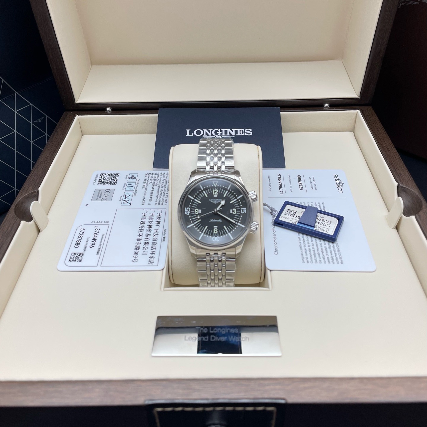 全新未使用品 Longines 浪琴 传奇潜水系列 L3.764.4.99.6,自动机械男表,表径39mm,表带全长,全新全膜大全套,公价¥28300