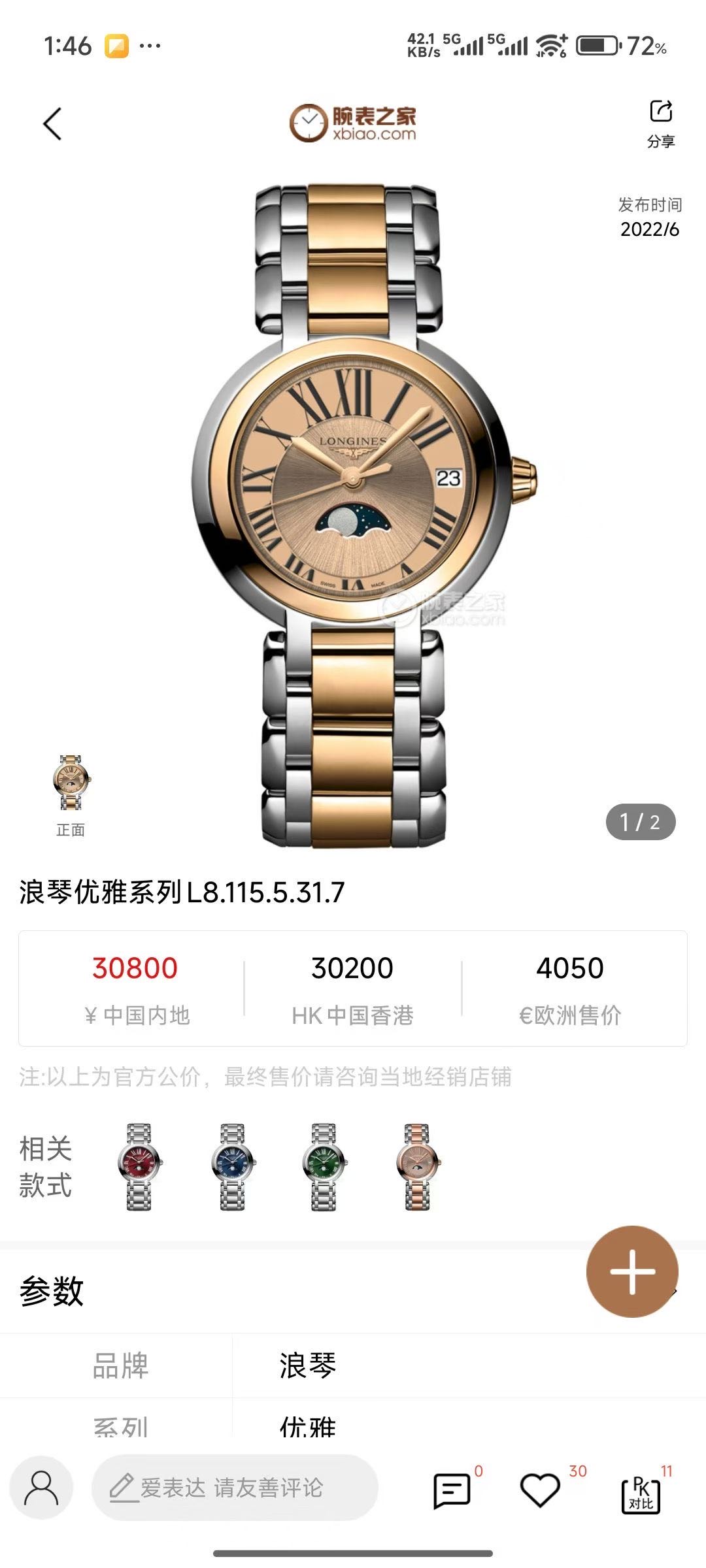 浪琴/Longines 优雅 L8.115.5.31.7 石英 专柜价:30800.00