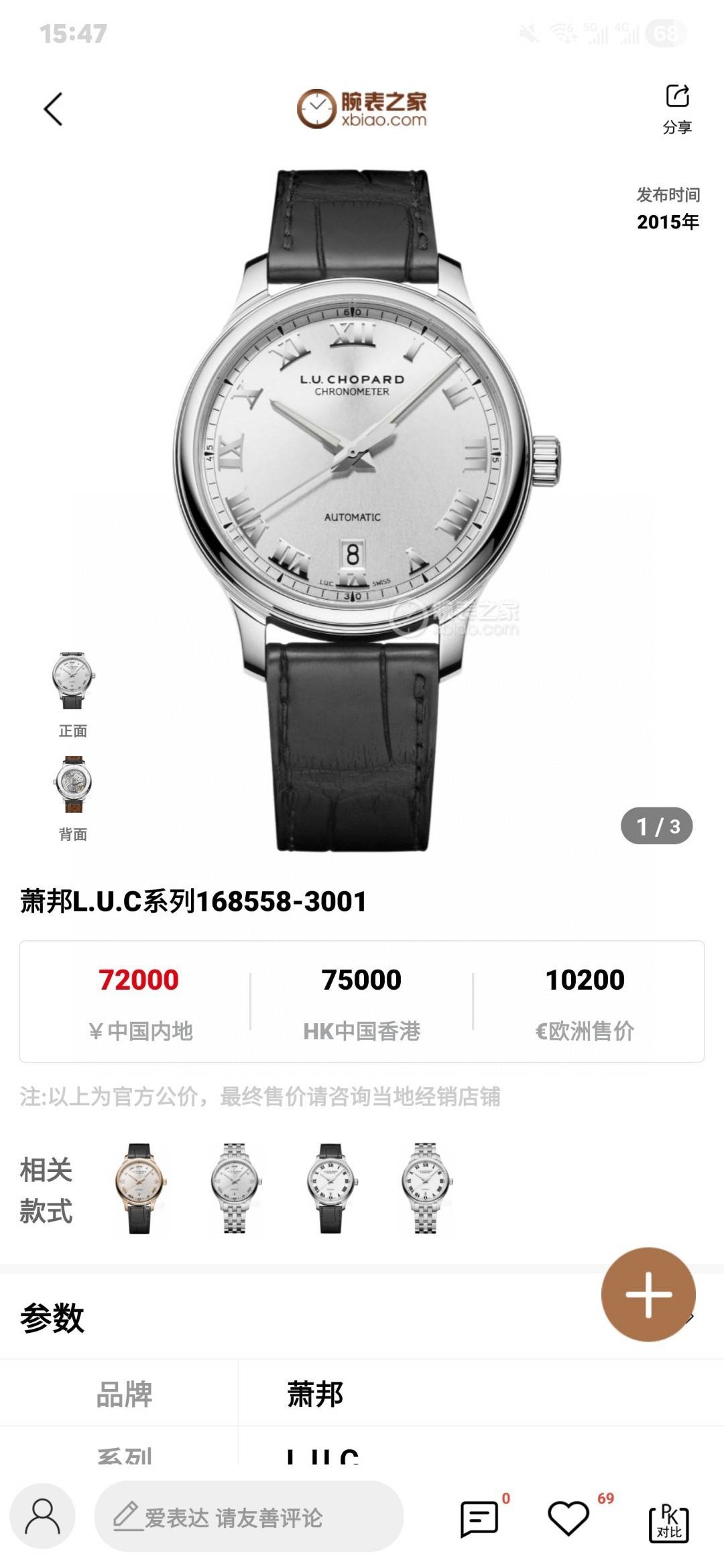 公价 72000 萧邦L.U.C系列 型号161902-5001自动机械 精钢材质 42mm表径 日期显示功能 单表 价格️议 欢迎转发操作!!!
