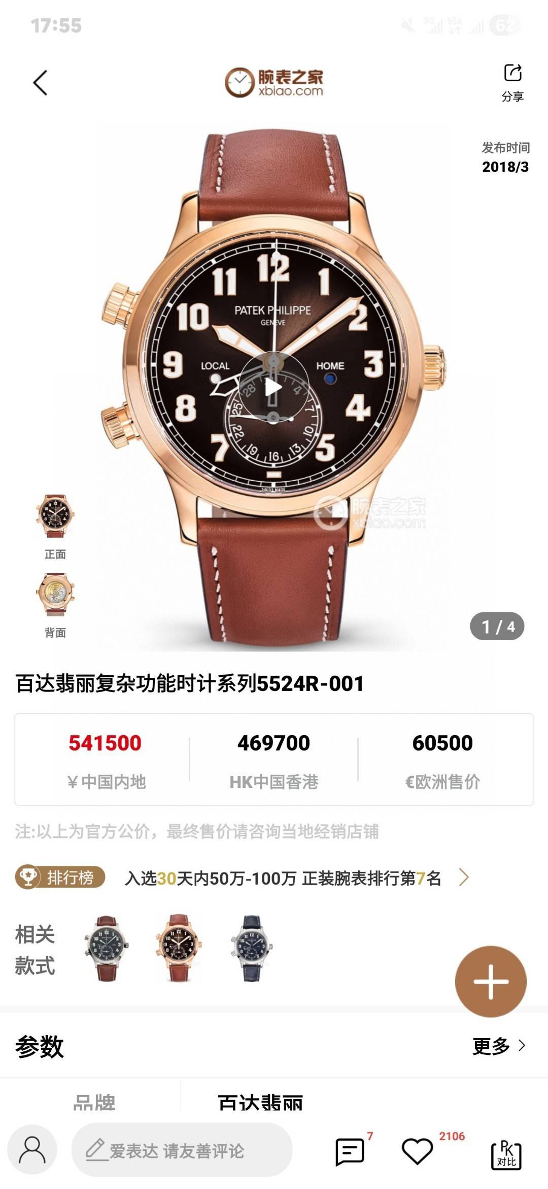 公价541500 百达翡丽复杂功能时计系列 型号5524R-001 自动机械 42mm表径 18k玫瑰金材质日期 双时区显示功能 18年全套 极品成色 价格️议 欢迎转发操作!!!