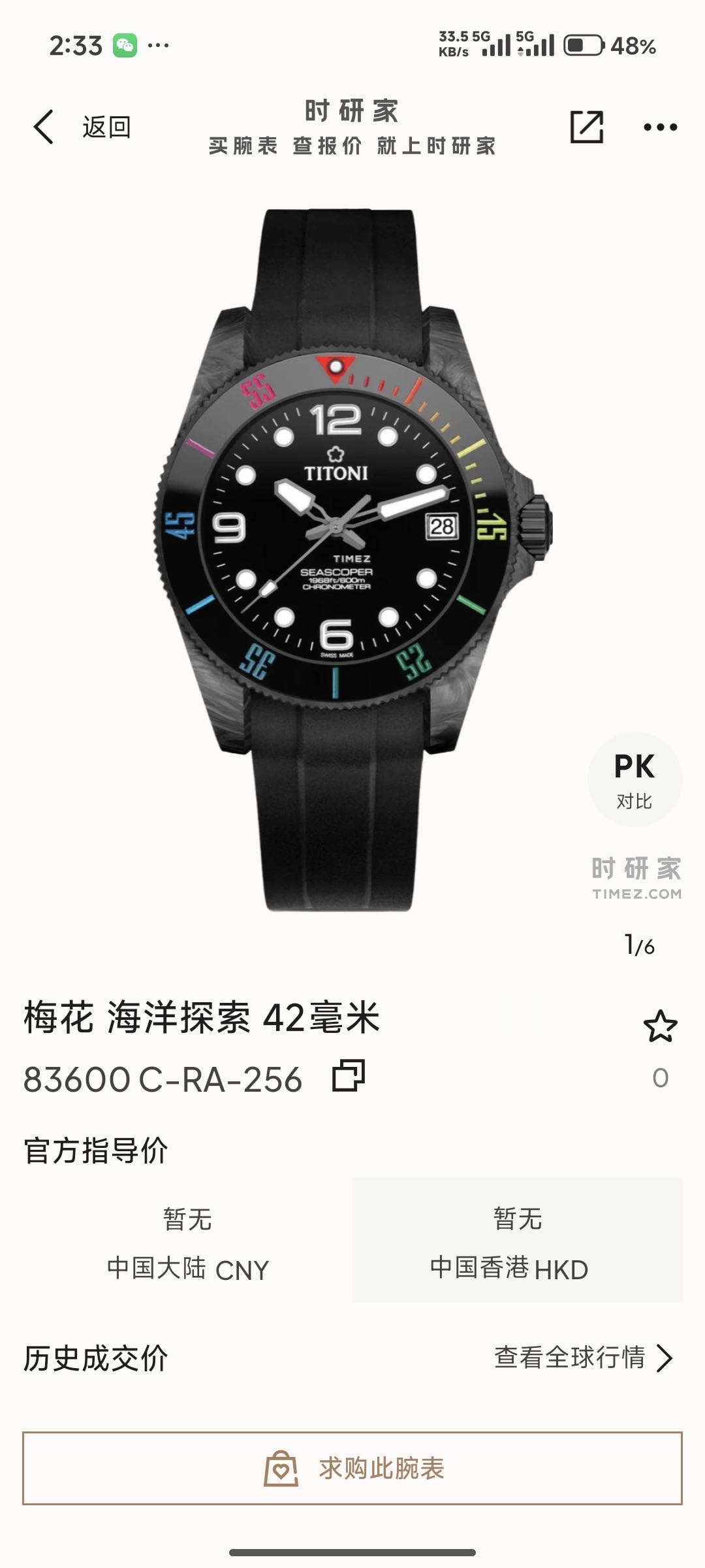 梅花海洋探索Seascoper83600 C-RA-256机械男性
