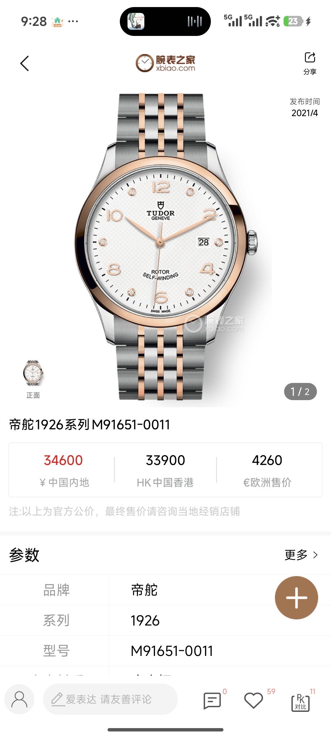 帝舵/Tudor 1926 m91651-0011 自动机械 专柜价:31800.00