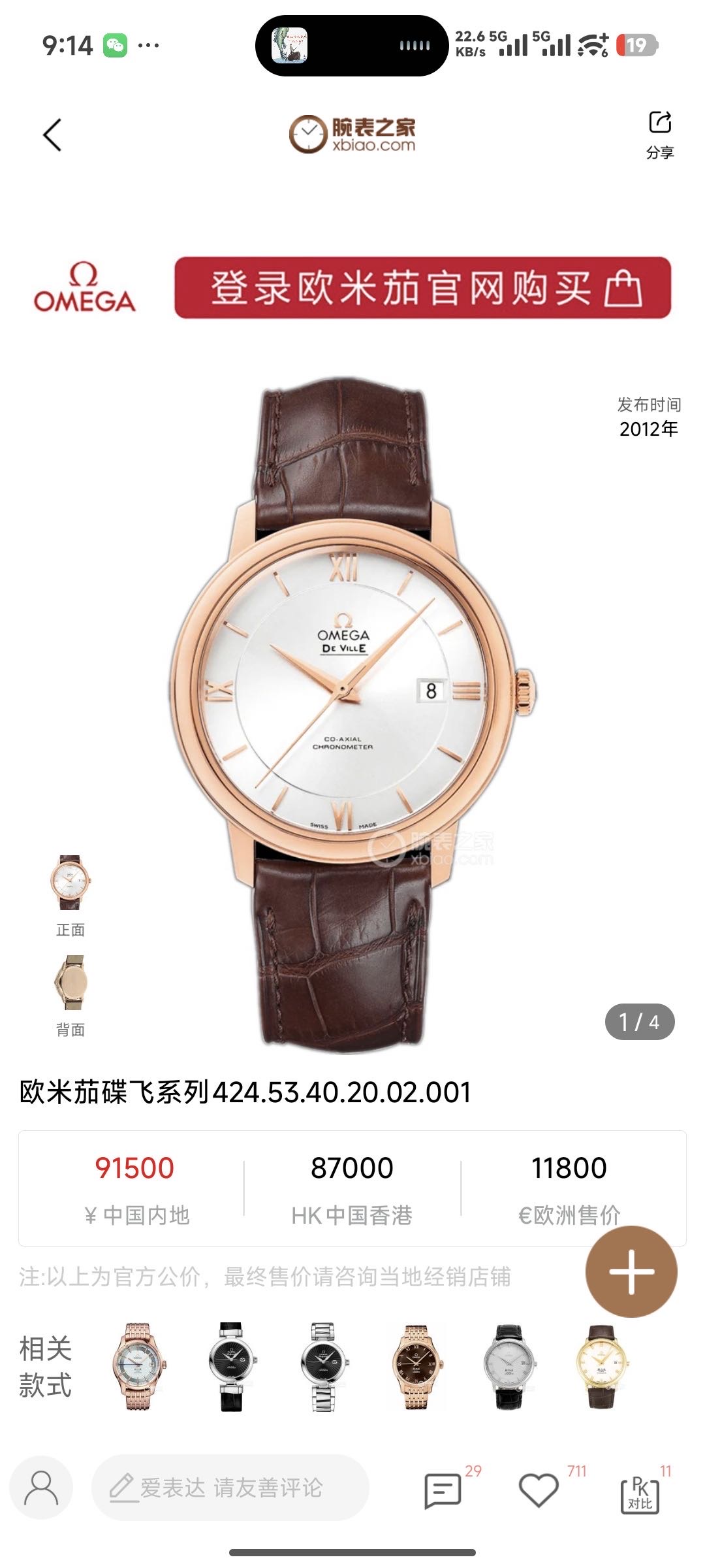 欧米茄/Omega 碟飞 424.53.40.20.02.002 自动机械 专柜价:85600.00