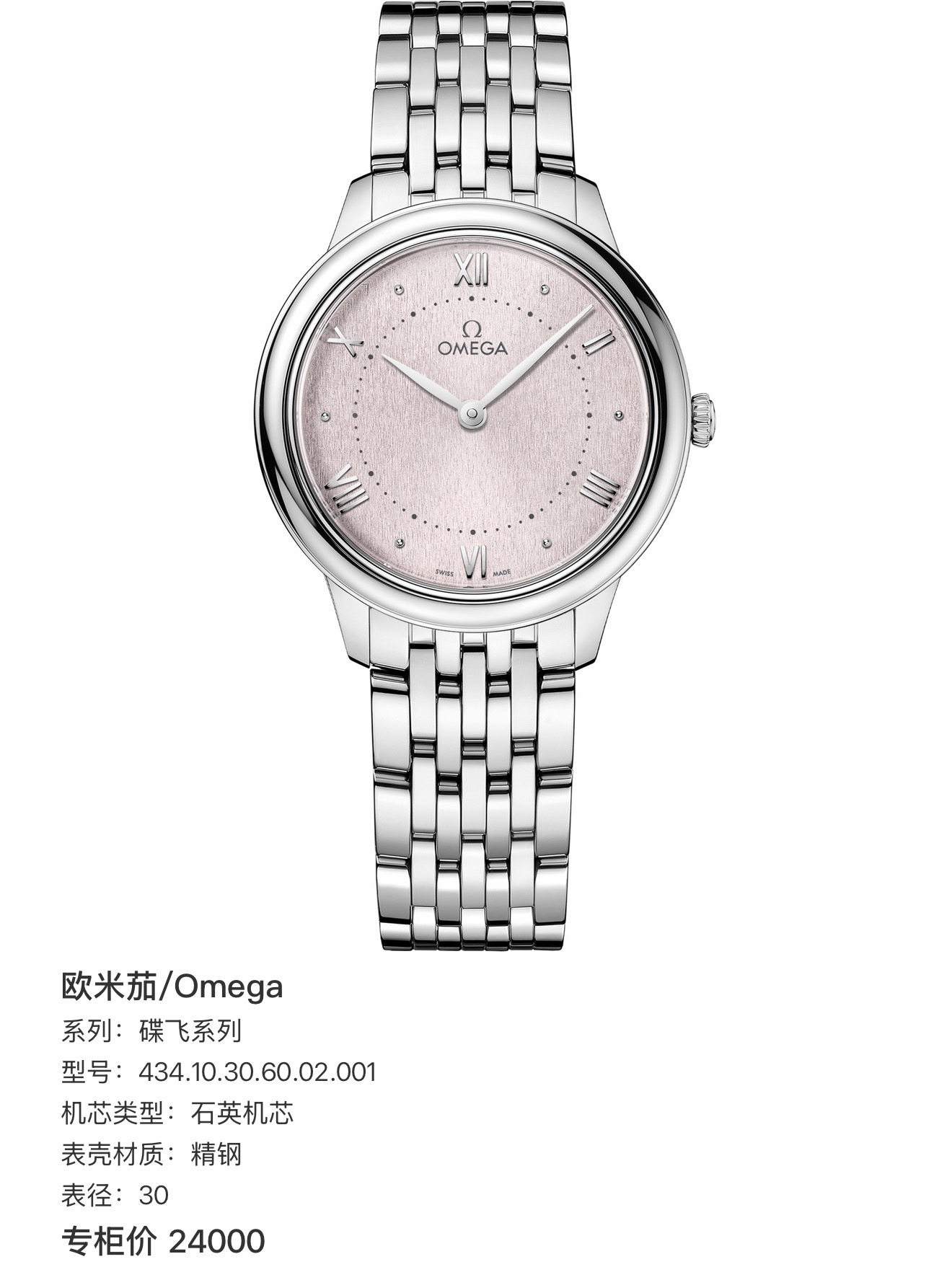 欧米茄/Omega 碟飞系列 434.10.30.60.02.001 石英机芯 精钢 表径30mm,2025年10月国庆购入,带票,专柜价24000,现好价