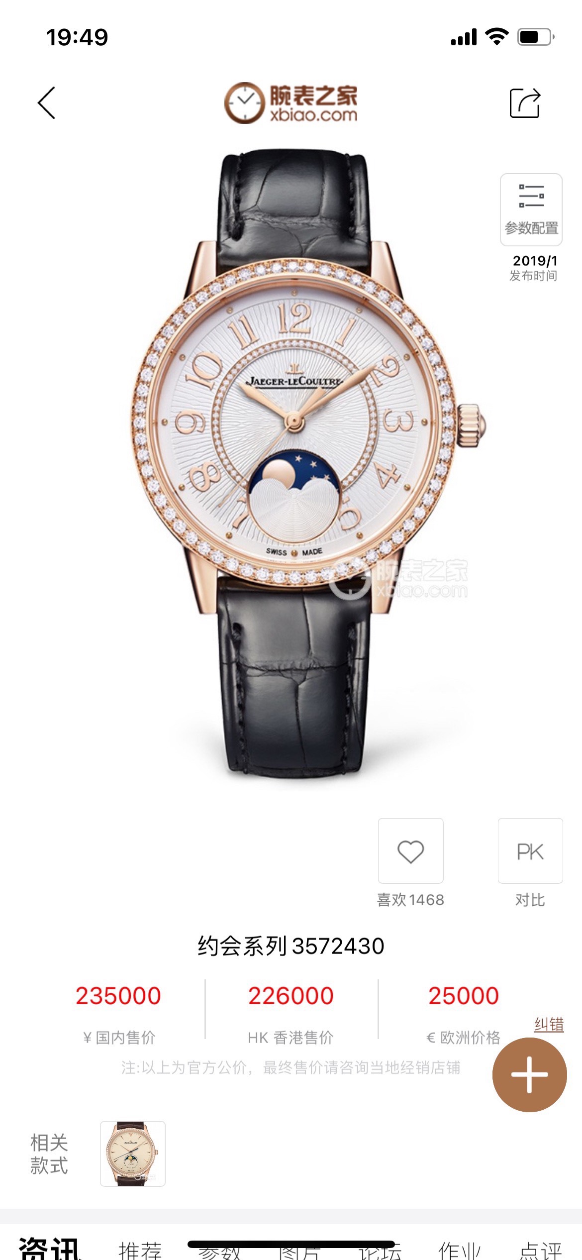 积家约会系列Q3572430 自动机械女表 18k玫瑰金材质 表径34毫米 专柜价:235000元