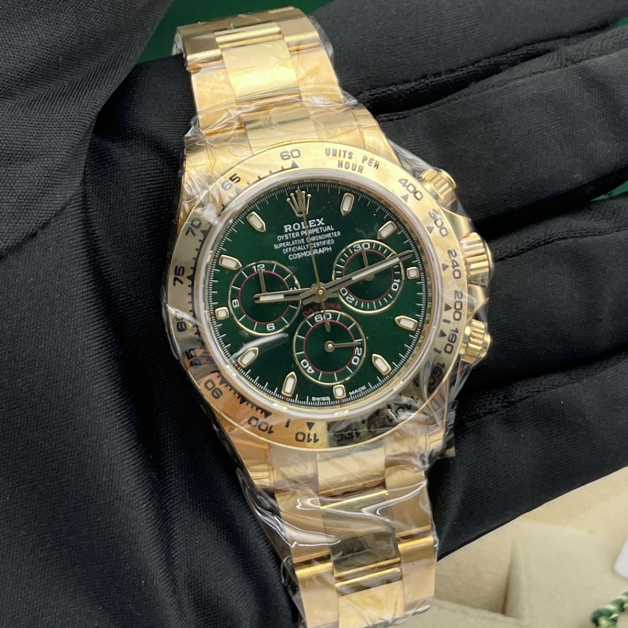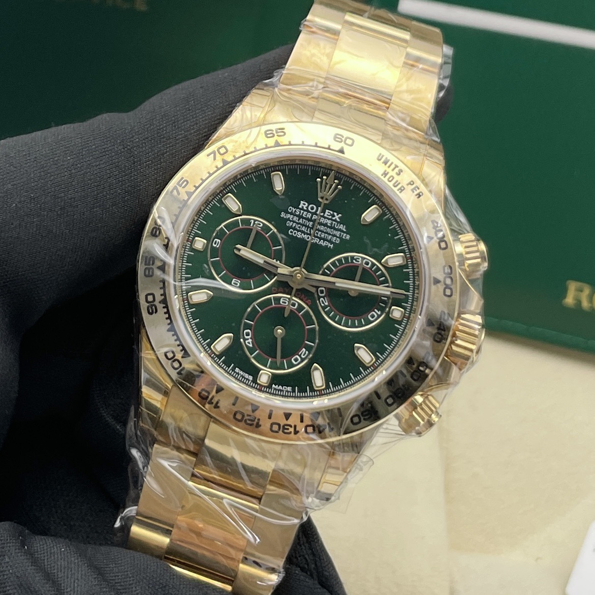 劳力士116508-0013(绿金迪)男士手表,宇宙计型迪通拿系列,绿色表盘,40mm表径全长12.5节表节,自动机械,计时,18k黄金