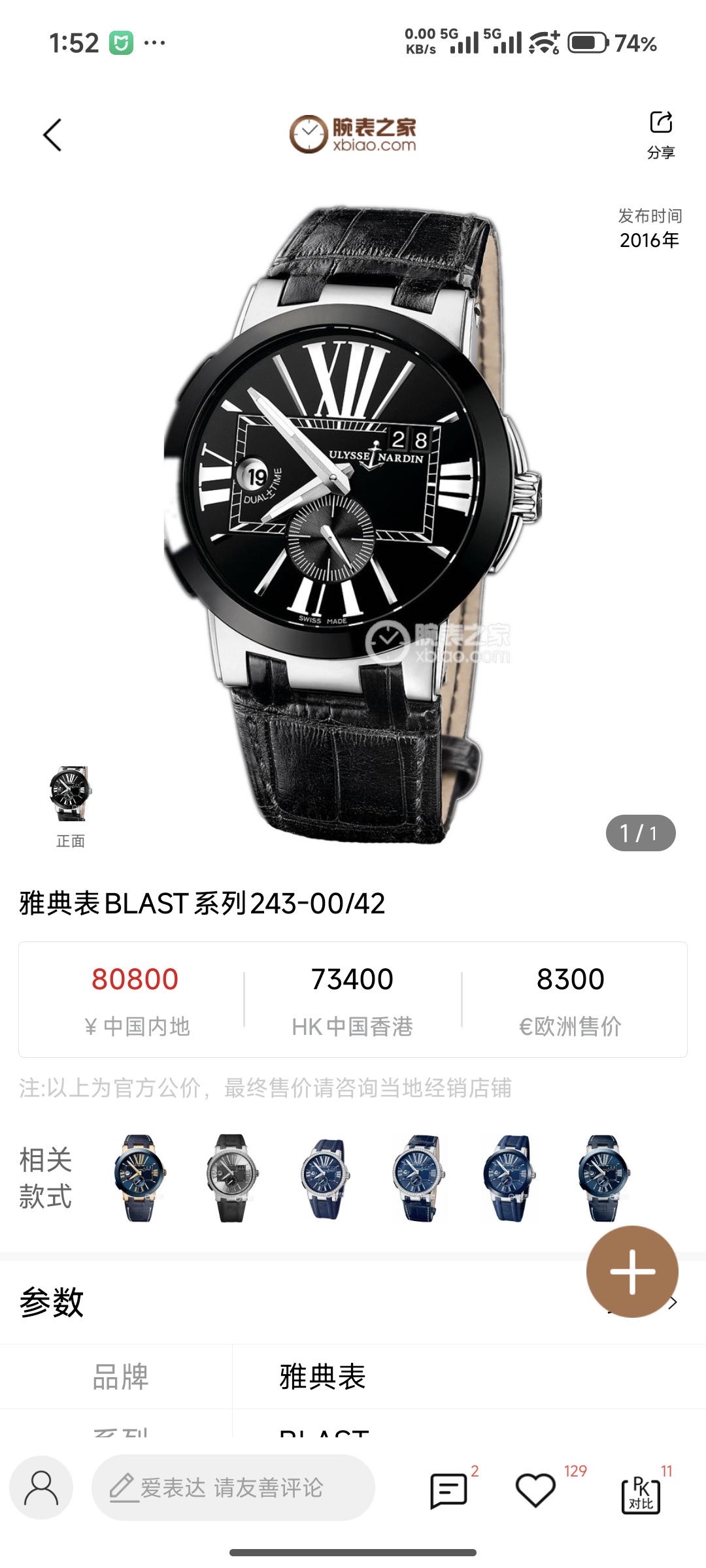 雅典/Ulysse Nardin BLAST 243-00/42 自动机械 43毫米 不锈钢 专柜价:141600.00元 国行全新未使用25年11月卡