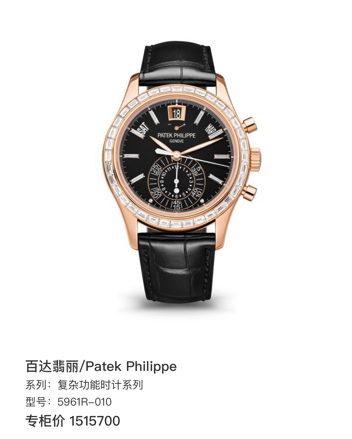 百达翡丽/Patek Philippe 复杂功能时计系列 5961R-010 专柜价1515700。