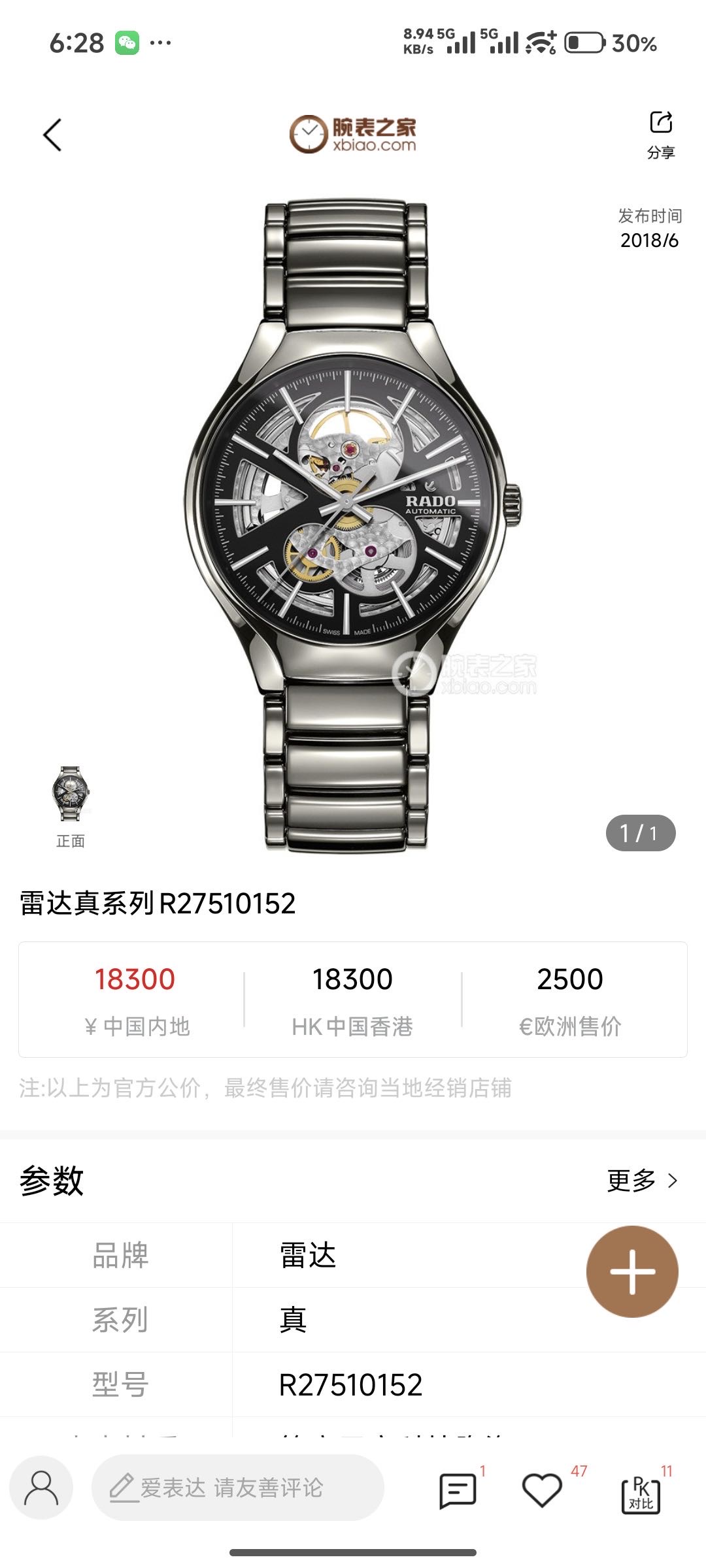 雷达/Rado 真 R27100152 专柜价:18300.00元 国行全新未使用25年当天卡