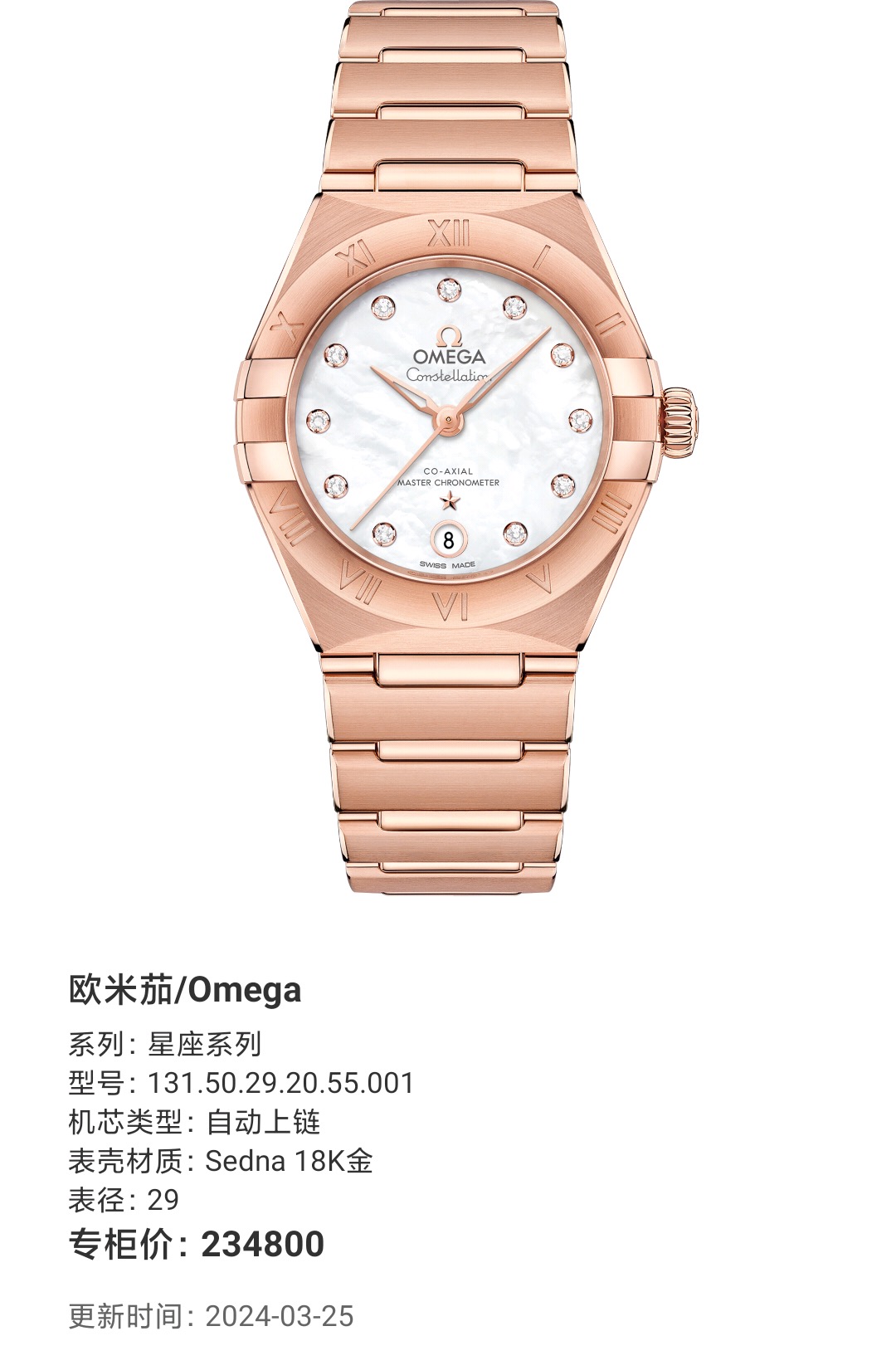 欧米茄/Omega 星座系列 131.50.29.20.55.001 自动上链 Sedna 18K金 29 专柜价234800