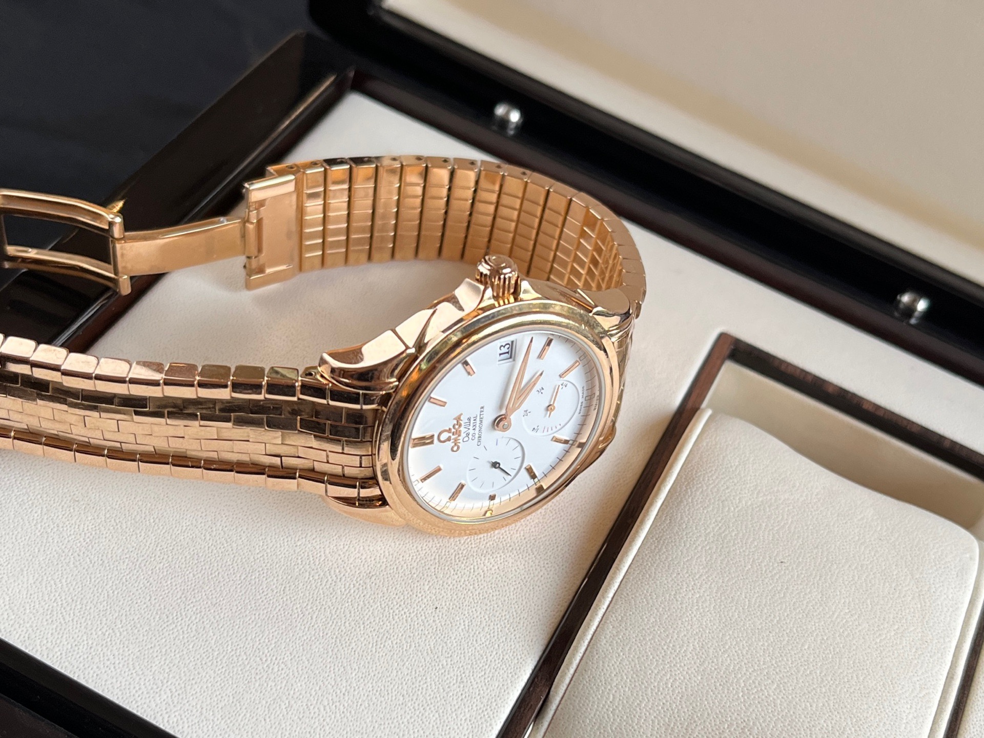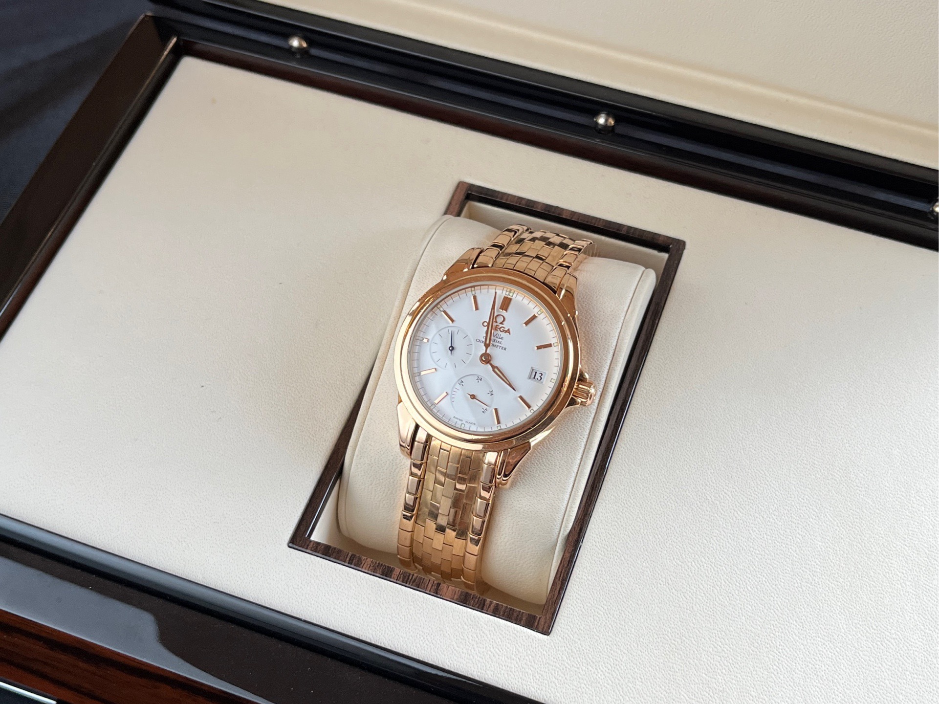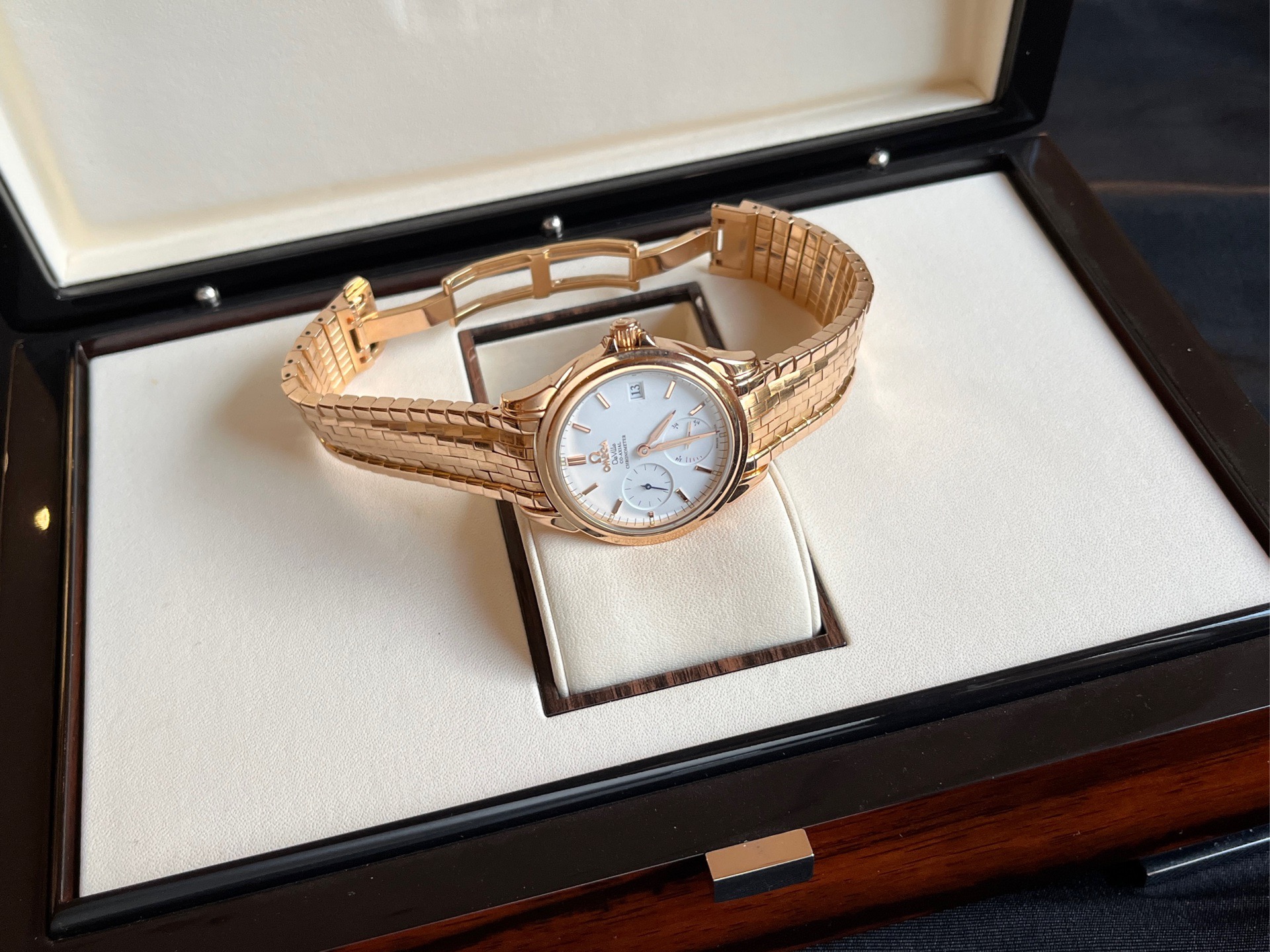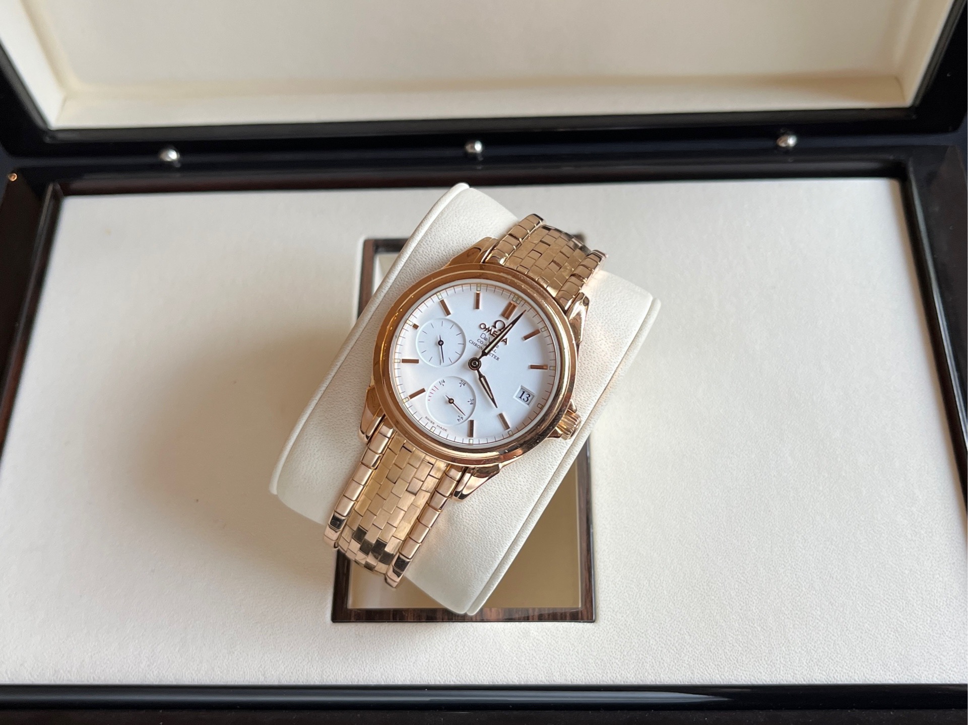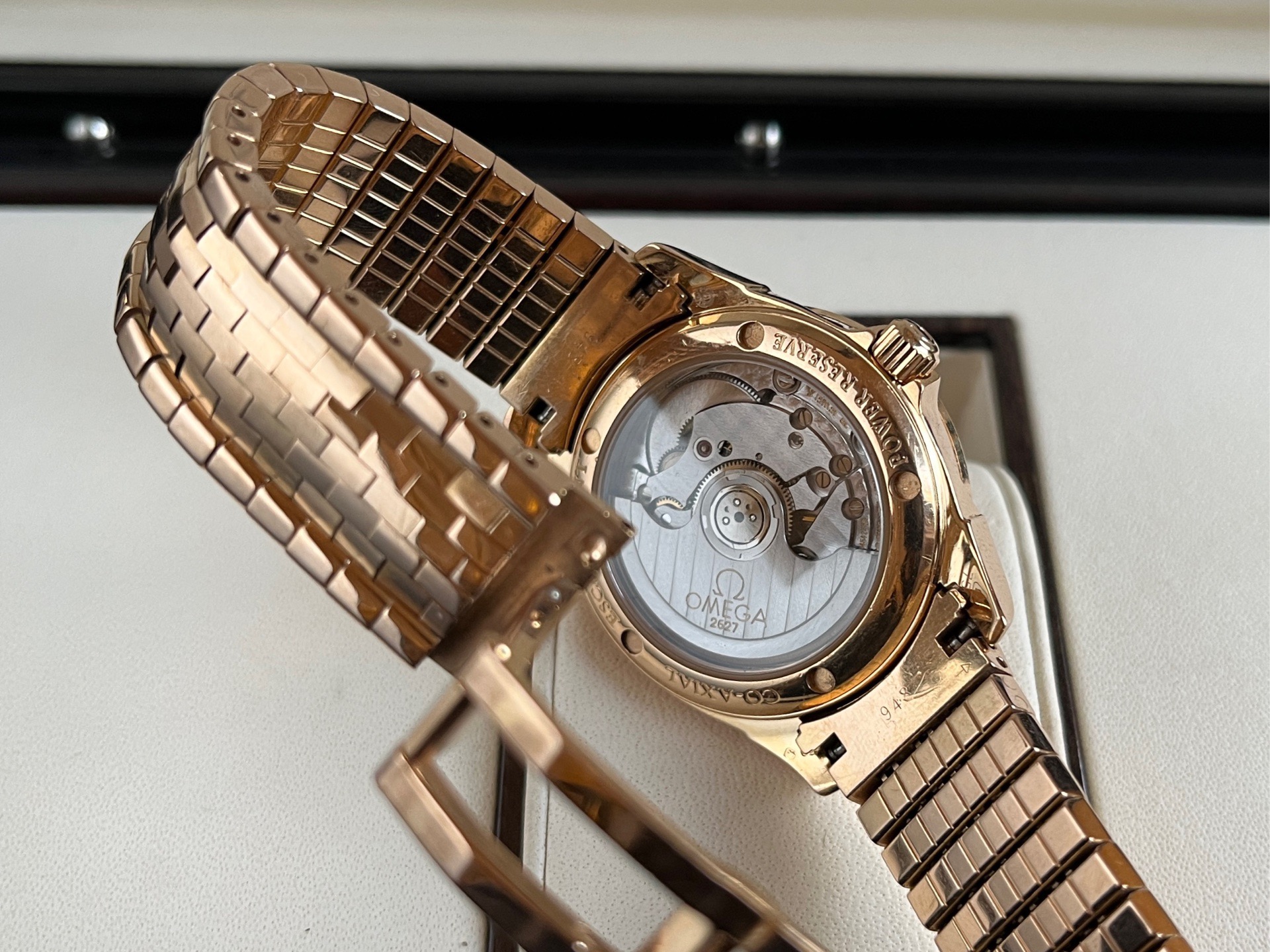 OMEGA欧米茄 碟飞系列4163.20.00 全玫瑰金碟飞 自动机械 表径:35mm 白盘金针金条刻 动力储备48小时 少有的玫瑰金长城带 上手十分壕气 客户一手 极品原始表况 单表 整表重195克 好价出