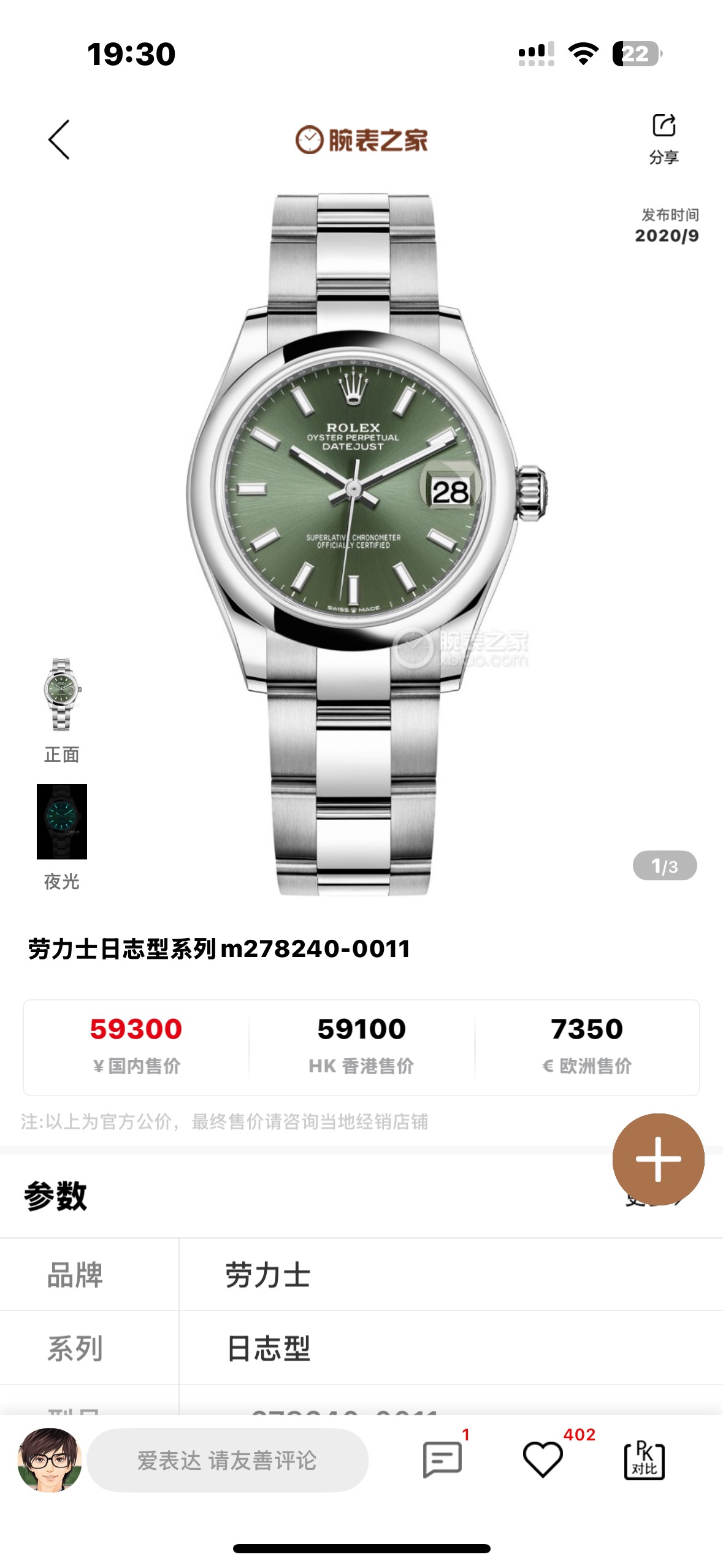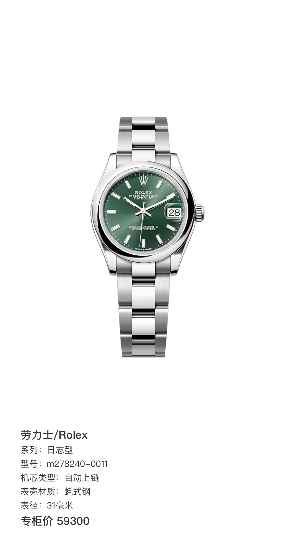 劳力士/Rolex 日志型 m278240-0011 自动上链 蚝式钢 31毫米 专柜价59300