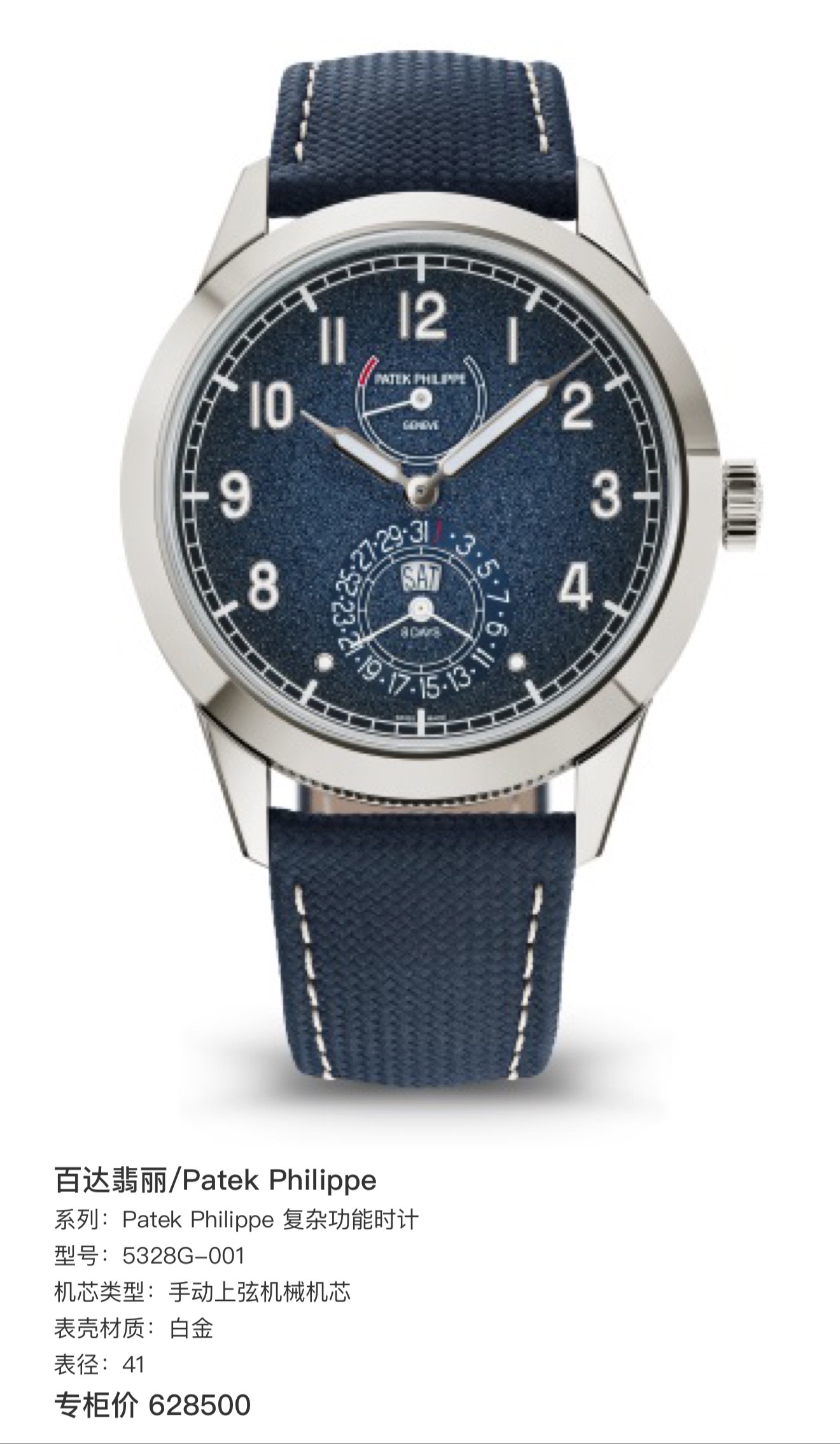 百达翡丽5328G 蓝色喷砂盘面 手感超帅