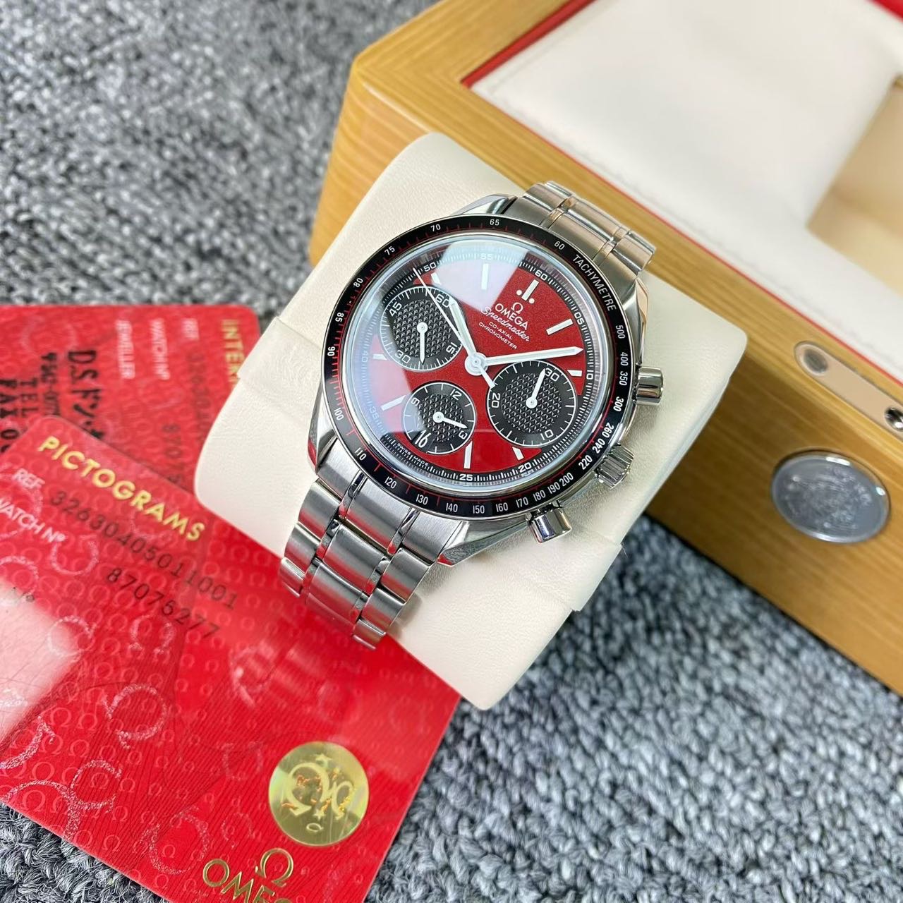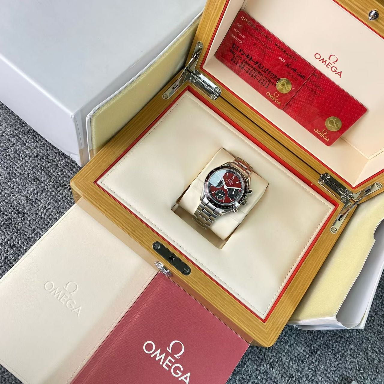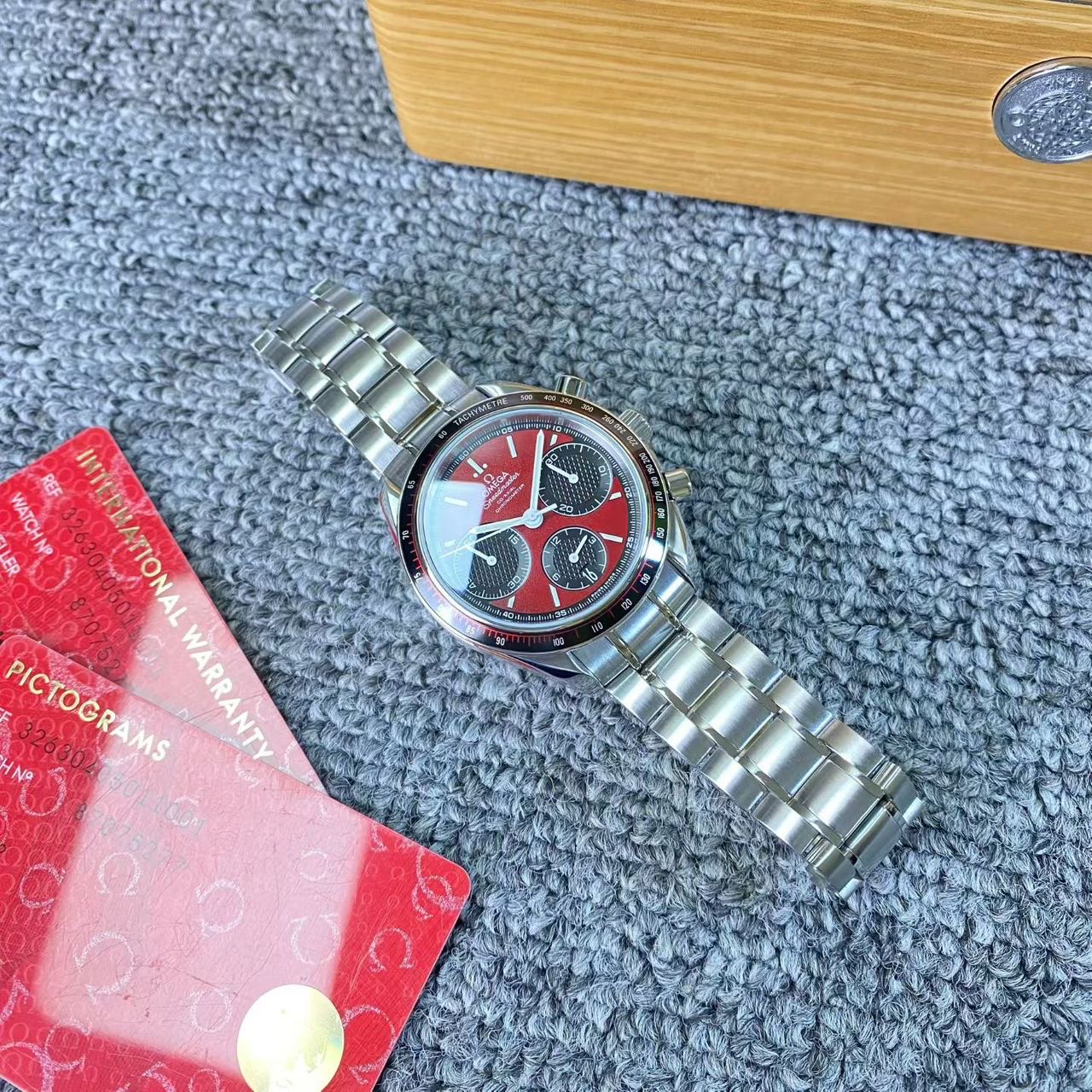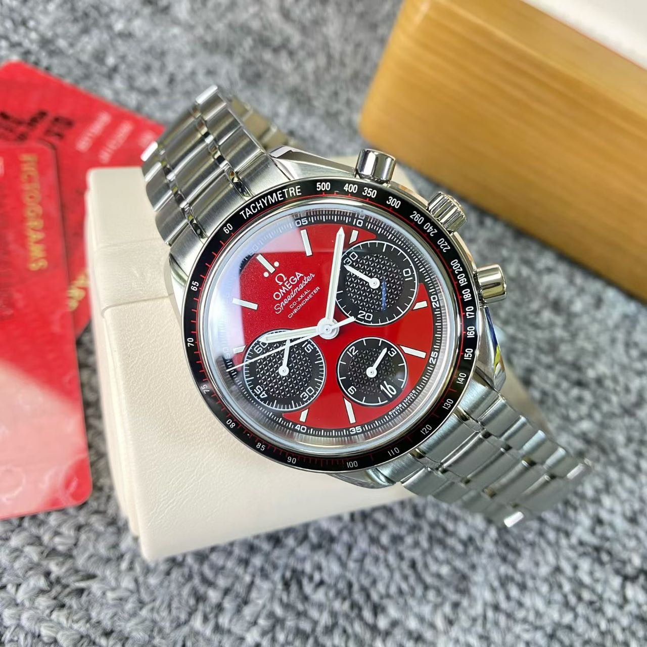 欧米茄超霸王系列赛车款,公价3.35万,表径40mm,全套附件齐全,稀有红黑配色,,经典三眼计时布局,搭载同轴天文台3330机芯,热门款。