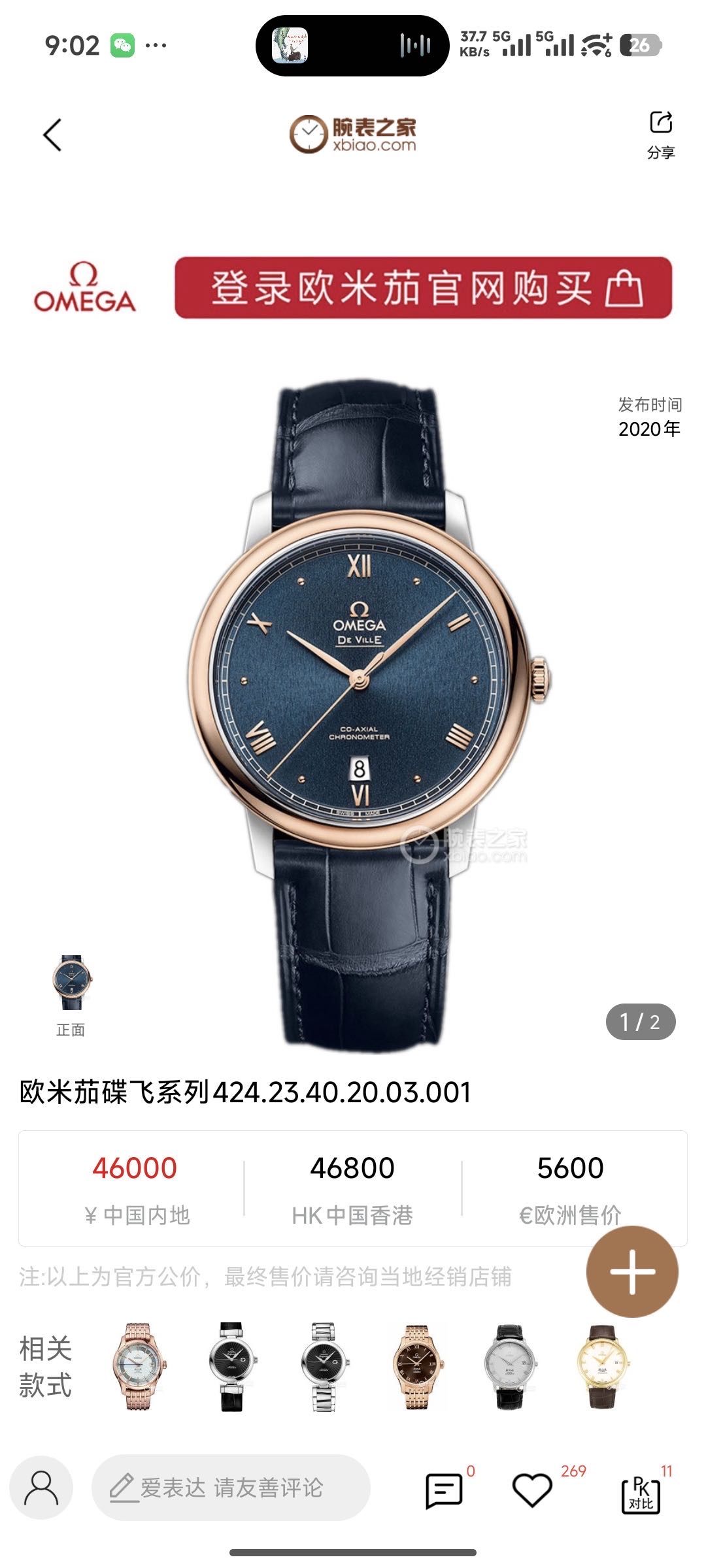 欧米茄/Omega 碟飞系列 424.23.40.20.03.001 自动上链 精钢‑红金 39.5 专柜价46000元 国行全新未使用25年11月卡