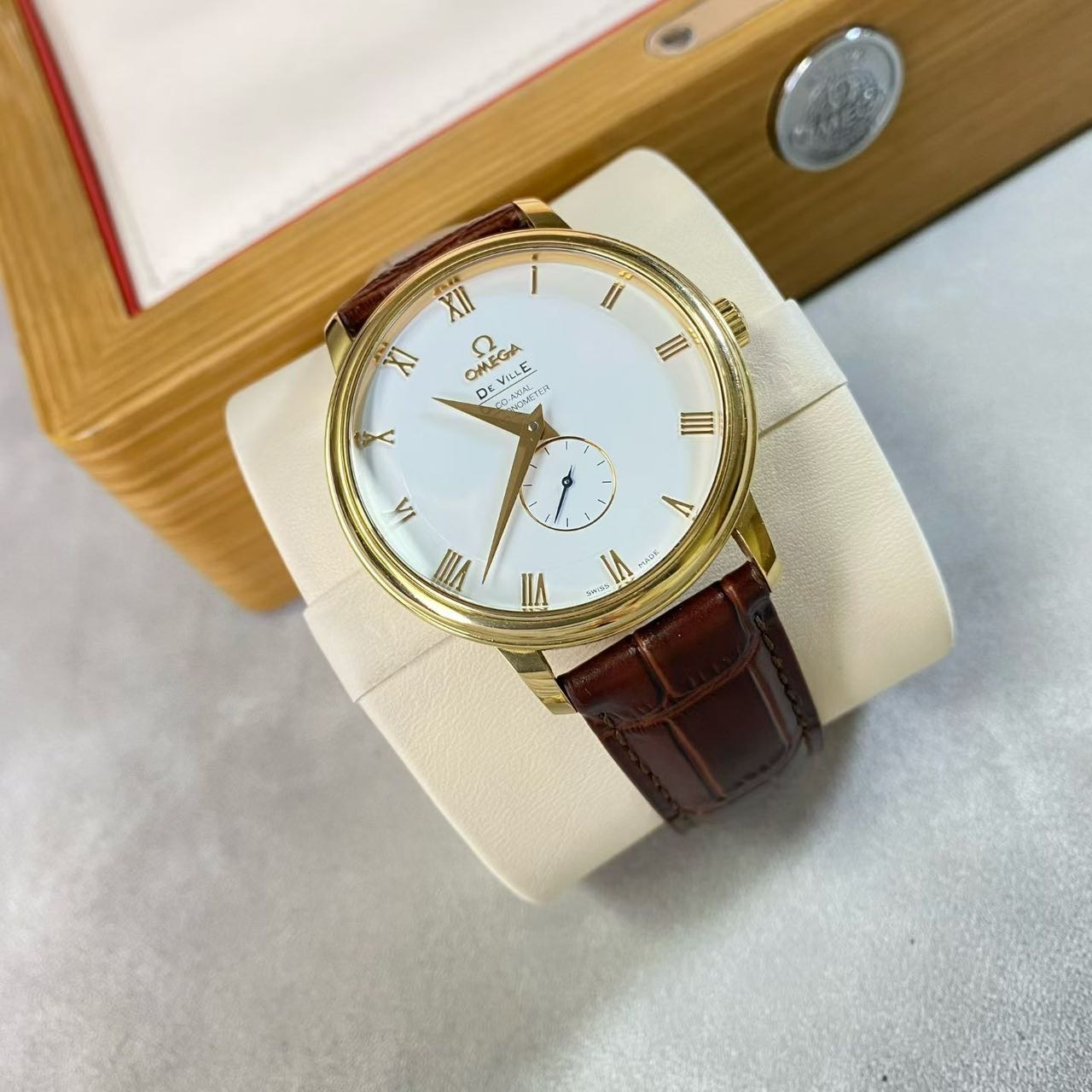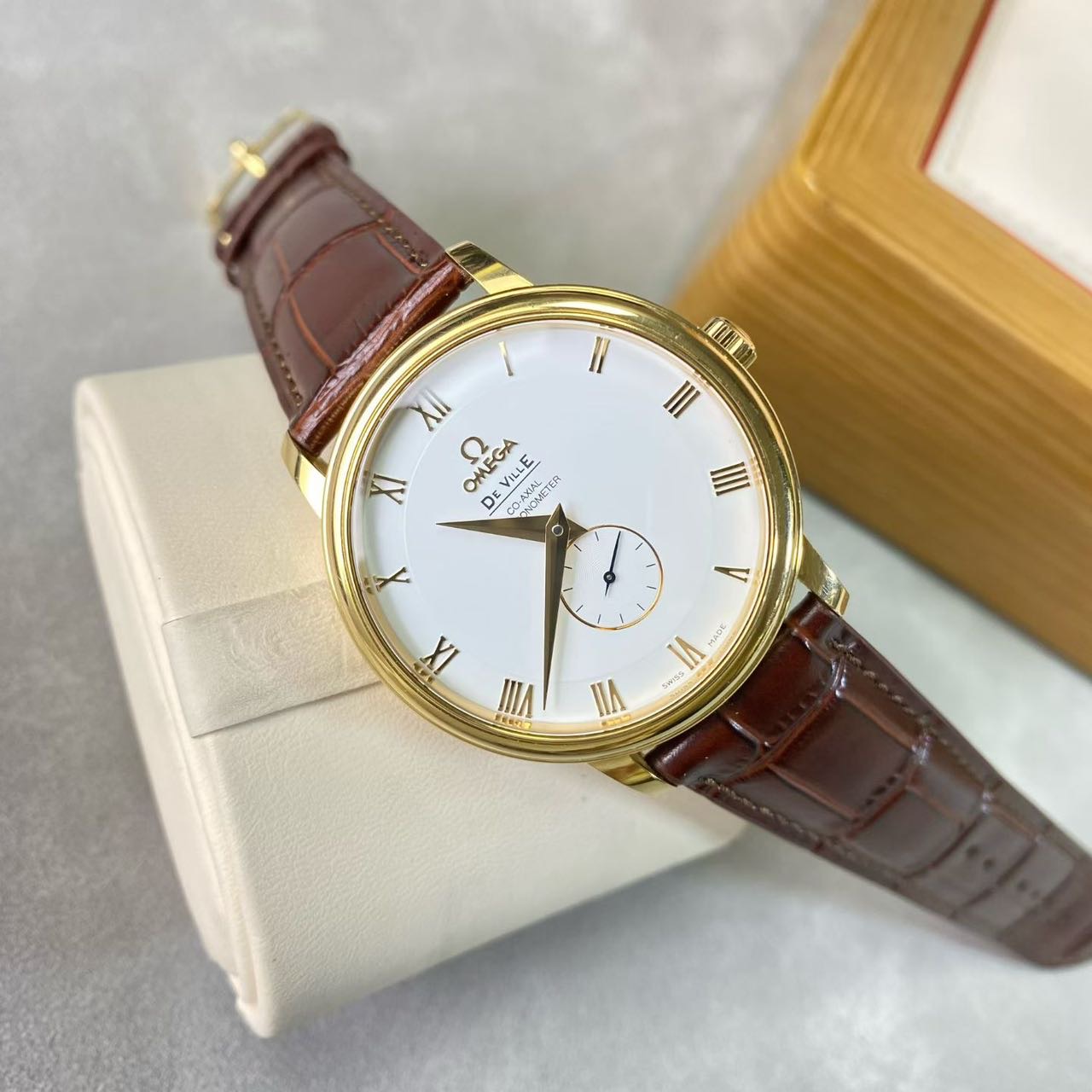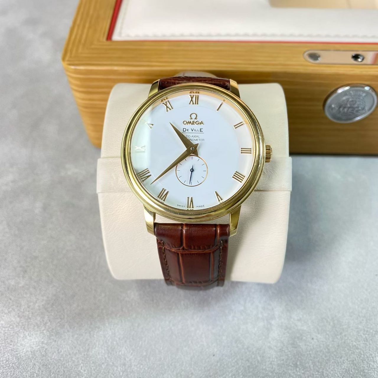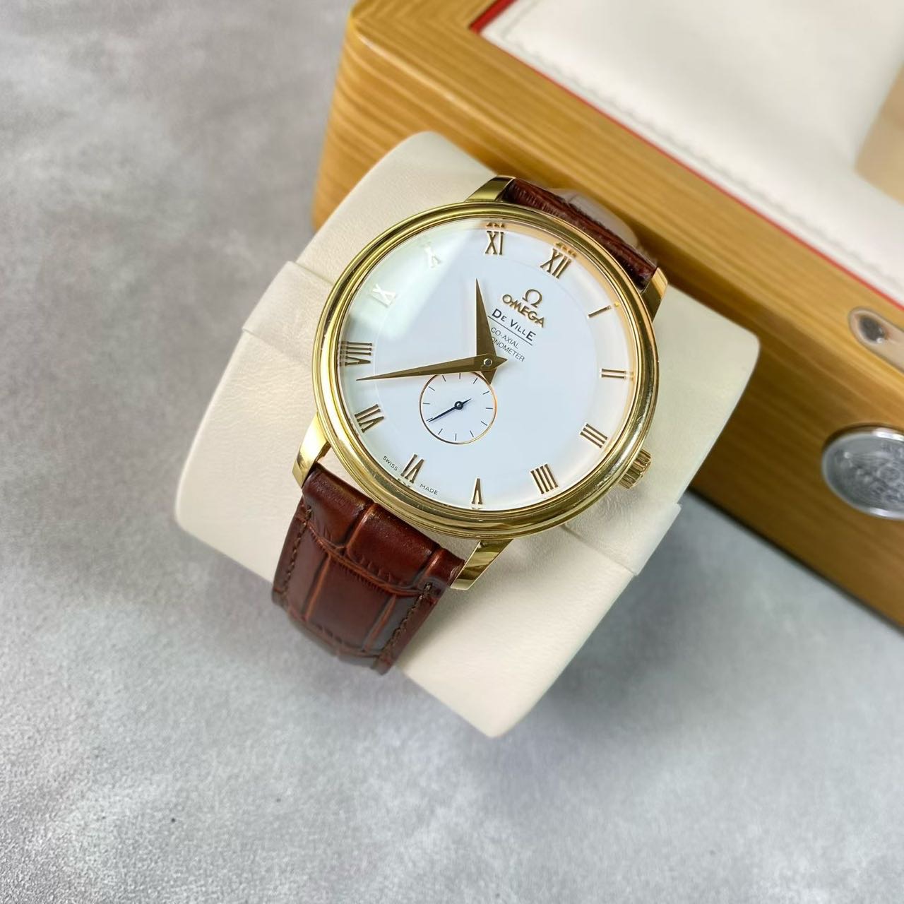 欧米茄碟飞系列,公价6.5万,表径39mm,单表,18K玫瑰金材质表壳 独立秒针设计。
