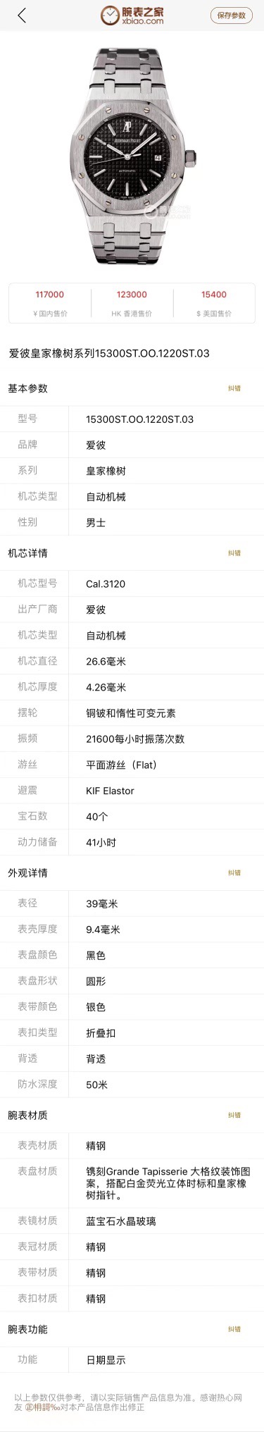 爱彼皇家橡树Royal Oak15300ST.OO.1220ST.03机械男性