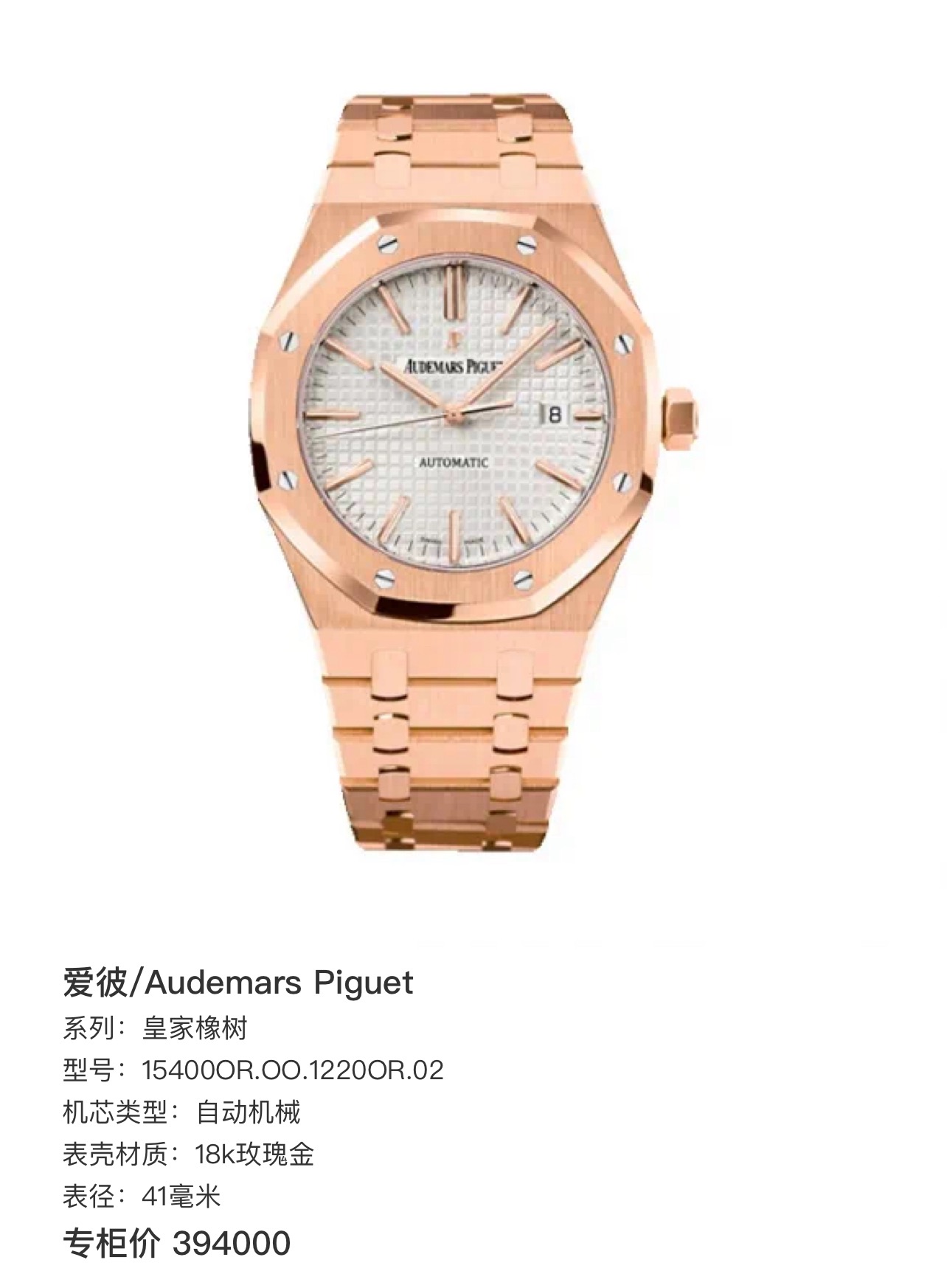 爱彼皇家橡树Royal Oak15400OR.OO.1220OR.02机械男性
