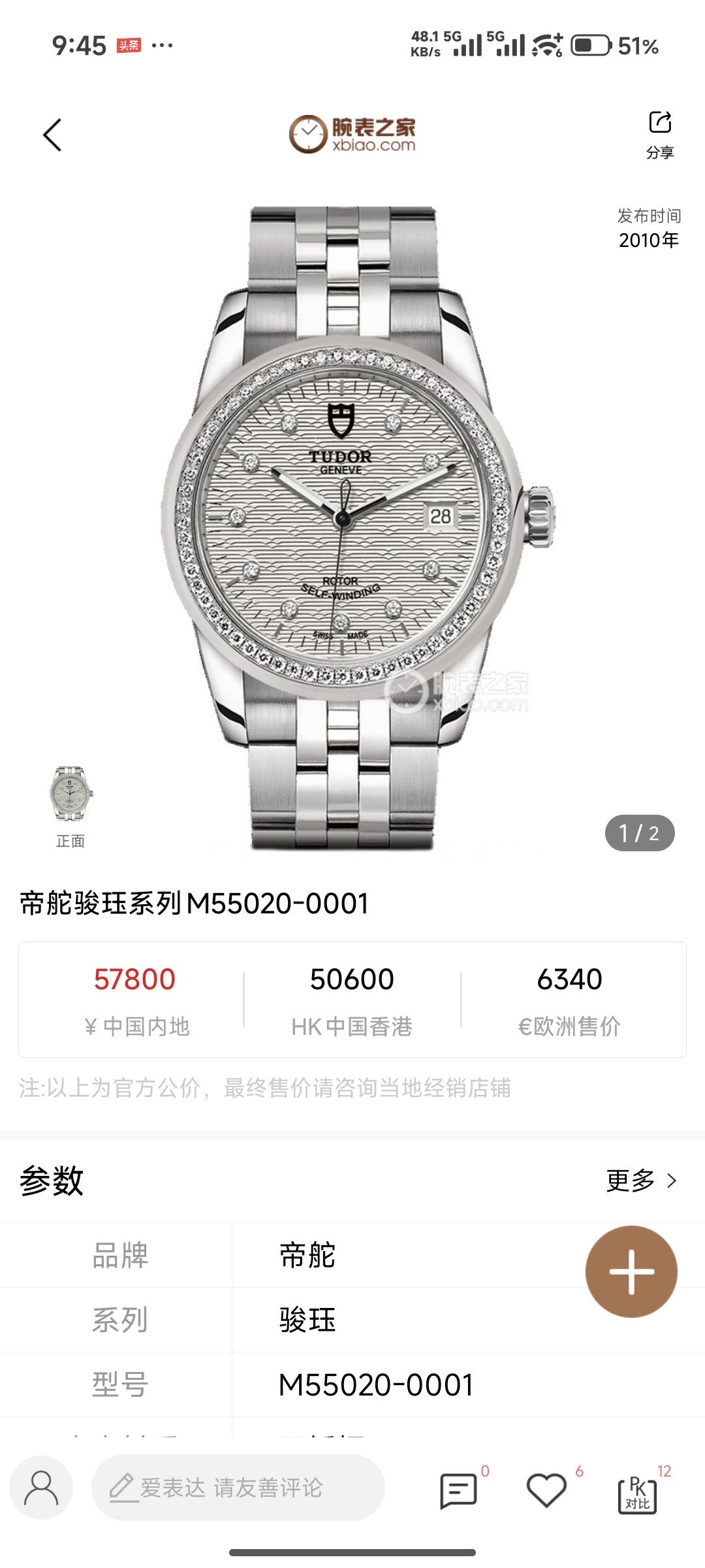 帝舵/Tudor 骏珏 m55020-0001 自动机械 专柜价:57800.00