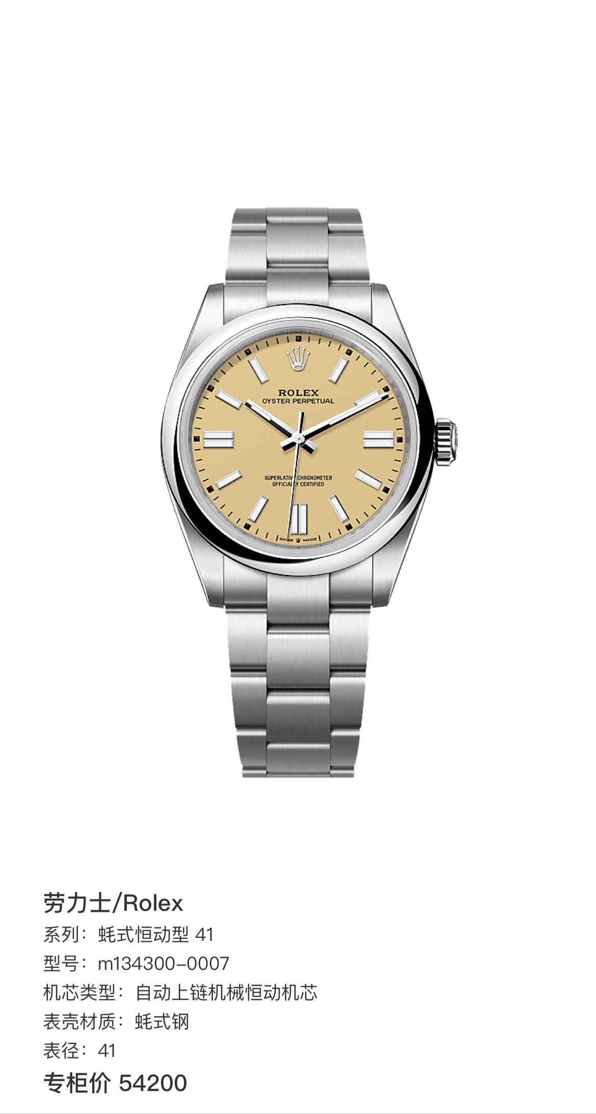 新收 劳力士蚝式恒动型m134300-0007 自动上链机械恒动机芯 蚝式钢 41mm 专柜价54200 全新全套好价