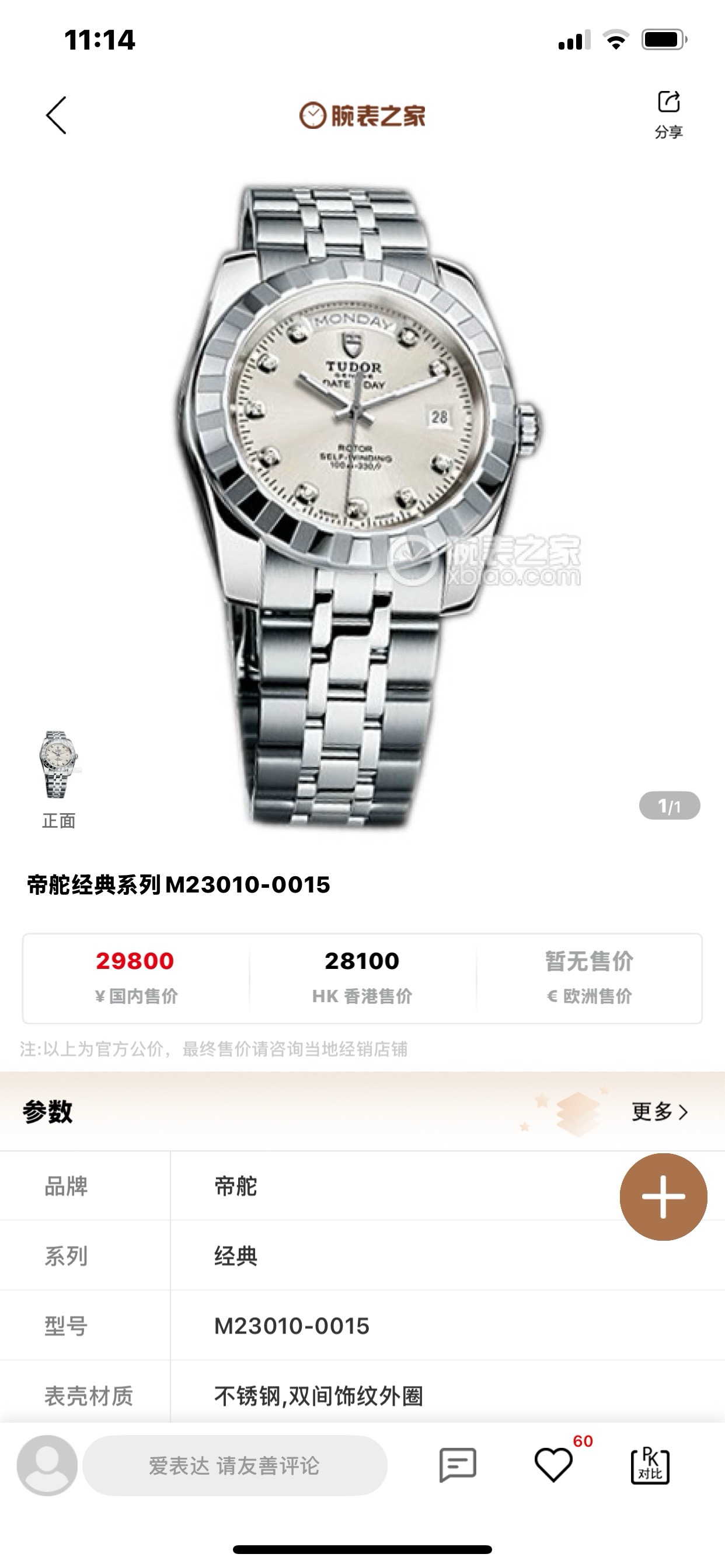 表盘材质:镶钻时标
