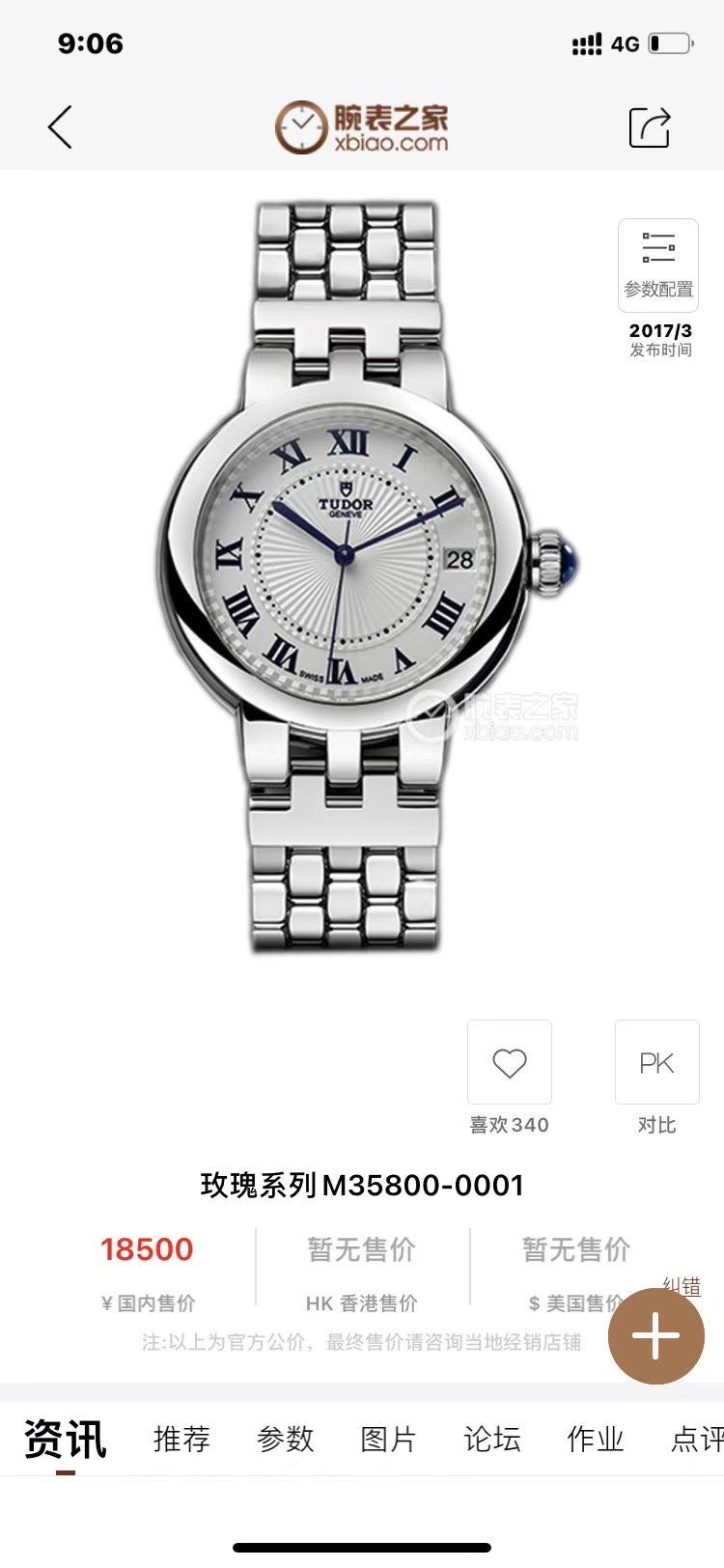 帝舵玫瑰系列 M35800-0001国行行货全新全套 官方联保5年!34mm表径,专柜售价20400近期保卡