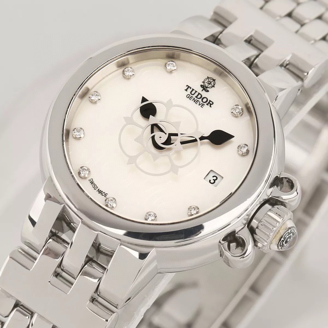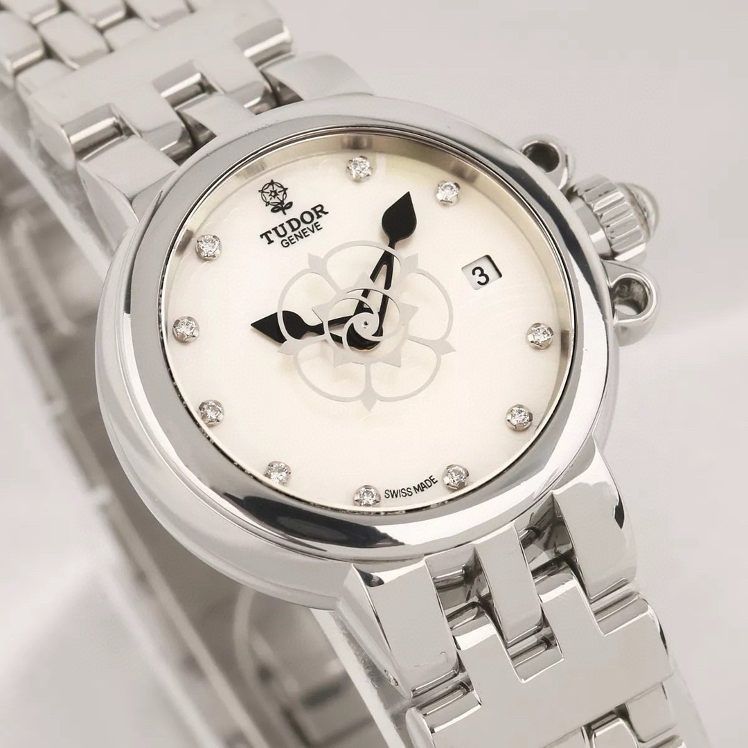 35100-65710白色珍珠贝母盘镶钻不锈钢表带