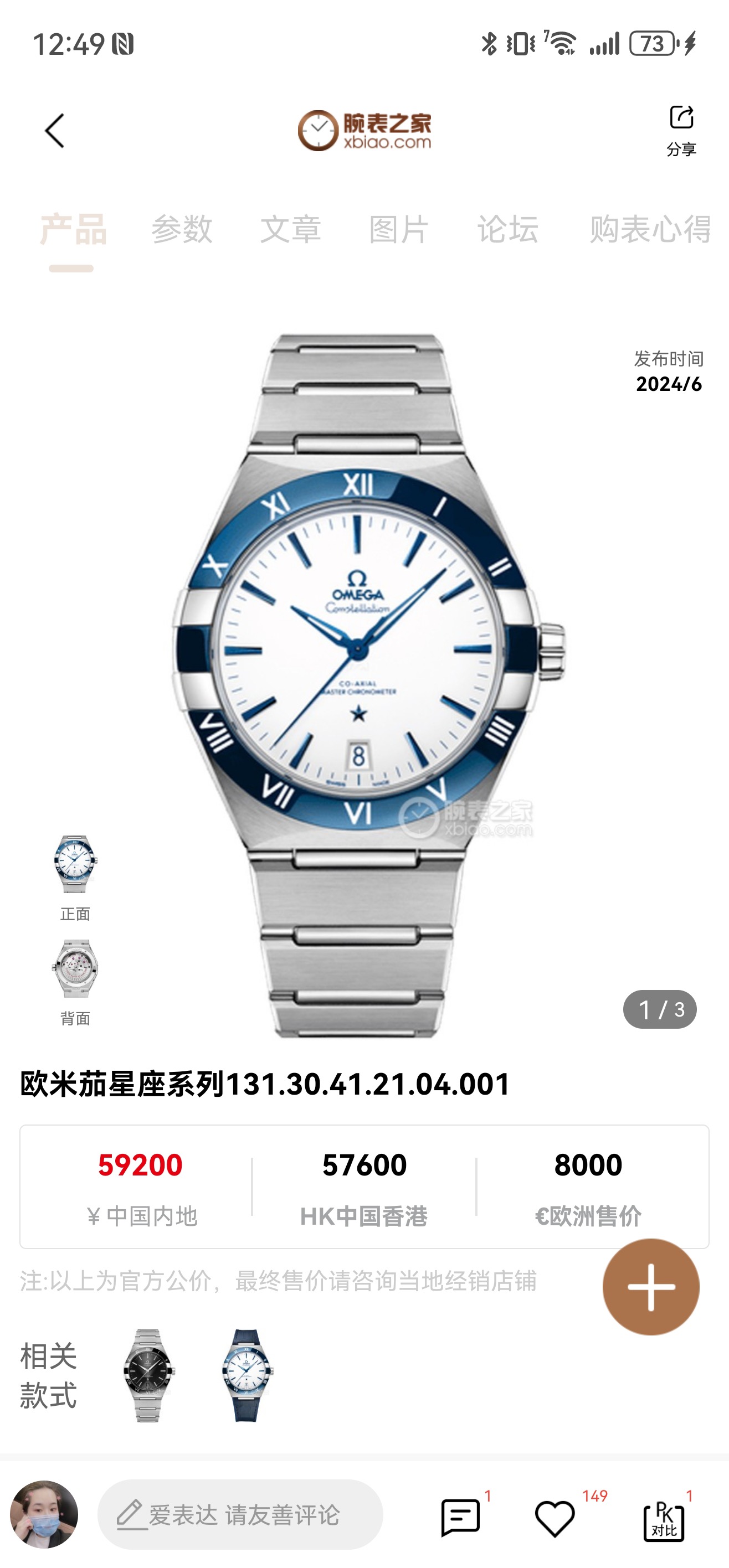 欧米茄星座曼哈顿系列131.33.41.21.04.001 自动上链 配备欧米茄最高端8900机芯 精钢材质 41mm表盘 珐琅表盘质感超级好 全套25年 专柜价57300元 现货好价。
