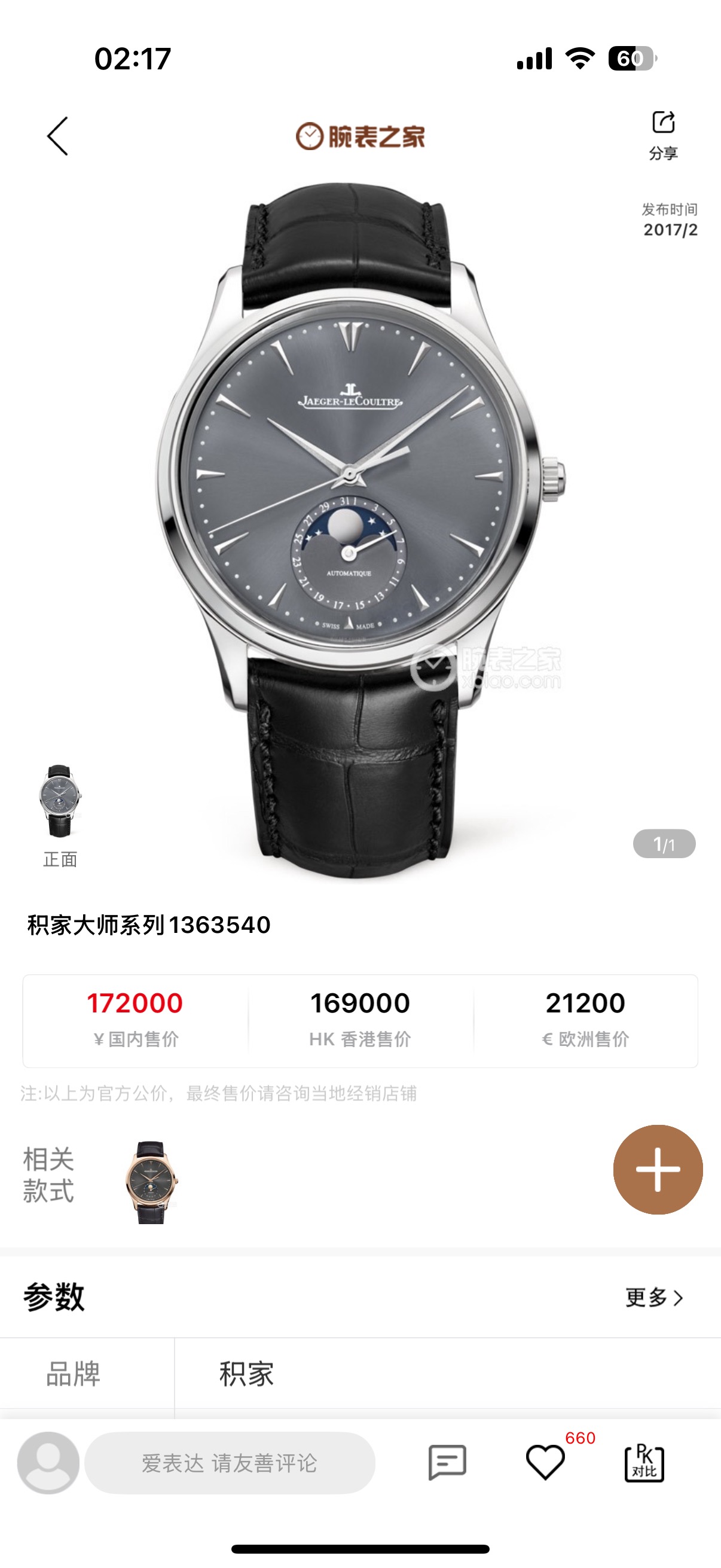 积家/Jaeger LeCoultre 大师 Q1363540 自动机械 18k白金 39MM 专柜价172000,21年全套