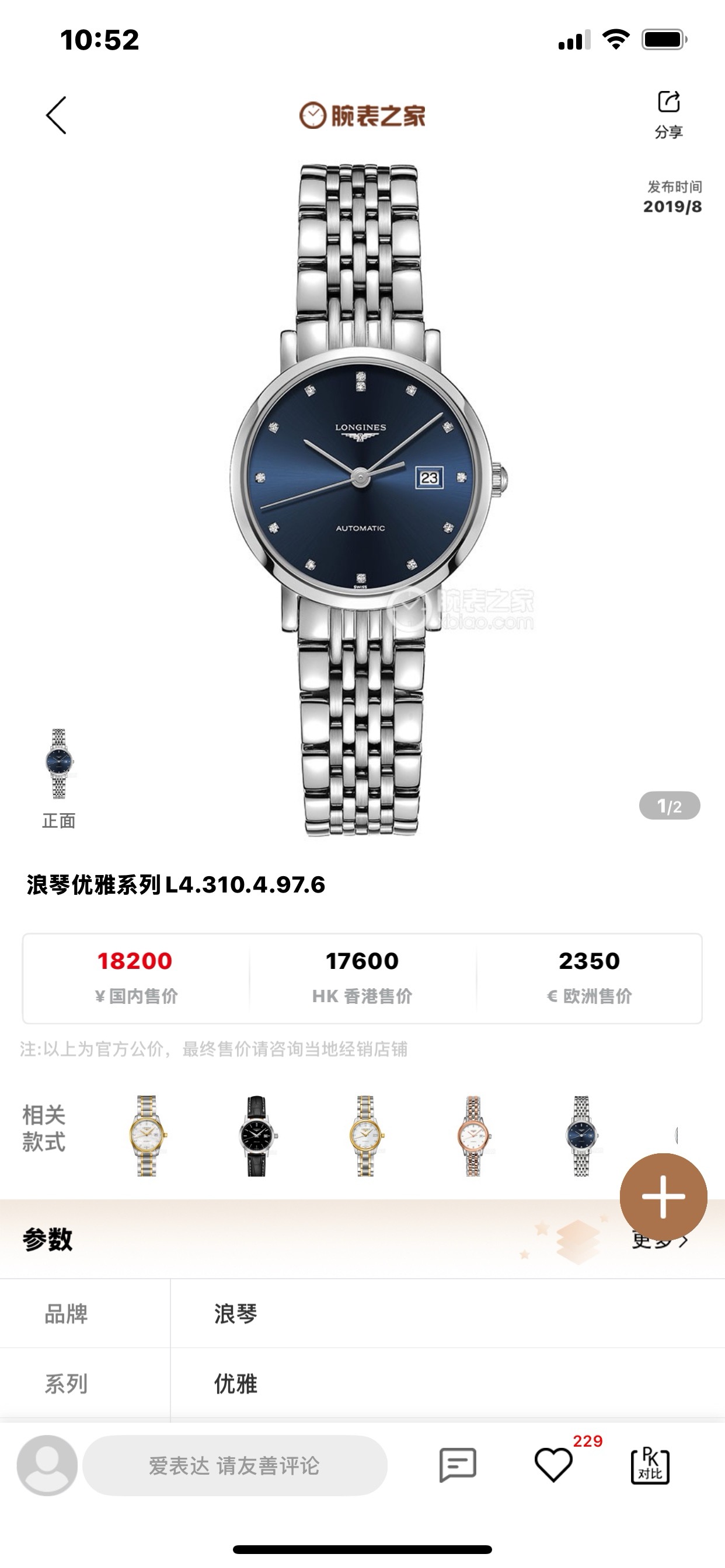 浪琴 新款镂空机芯 蓝盘 总重62.1克