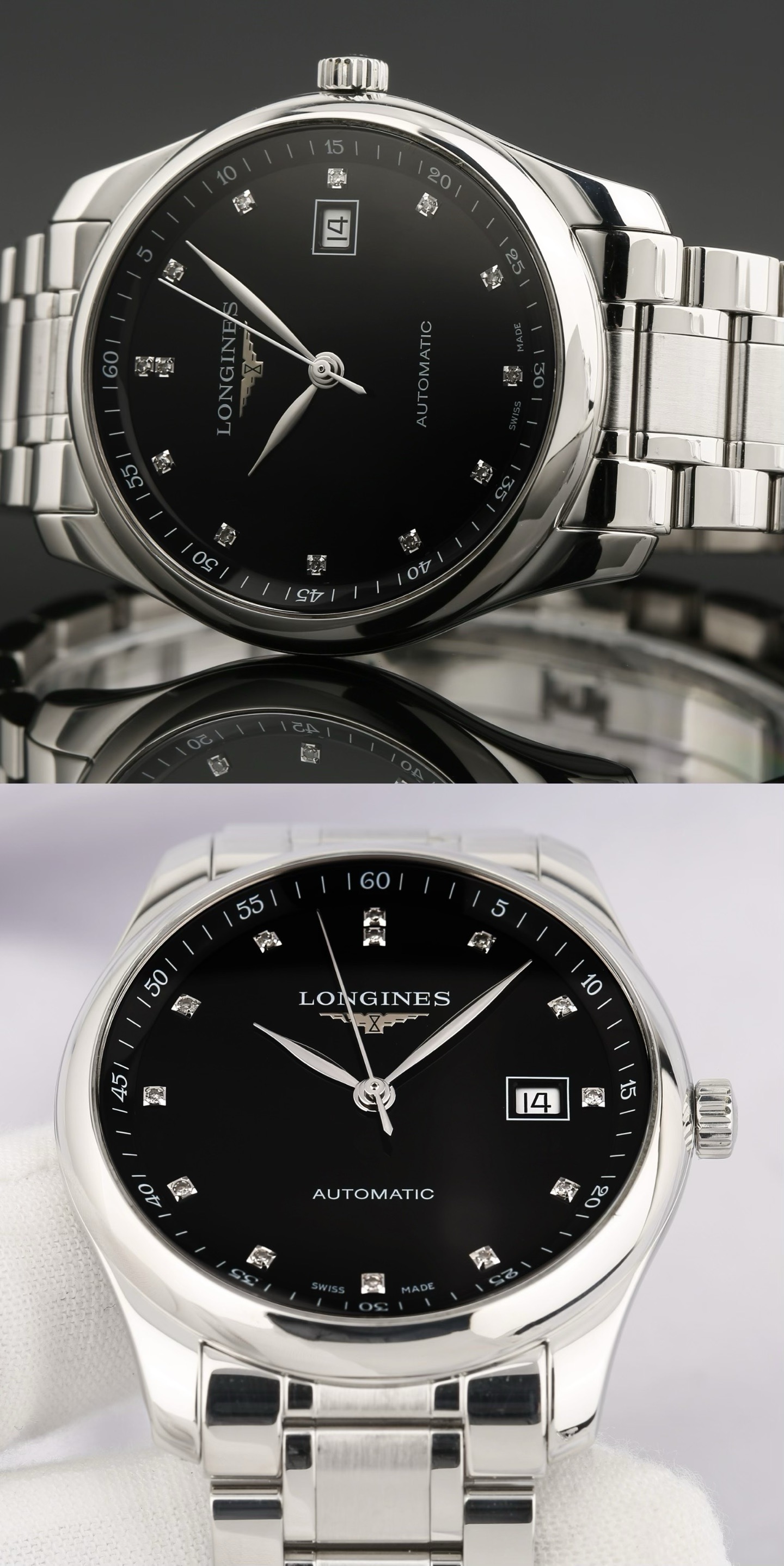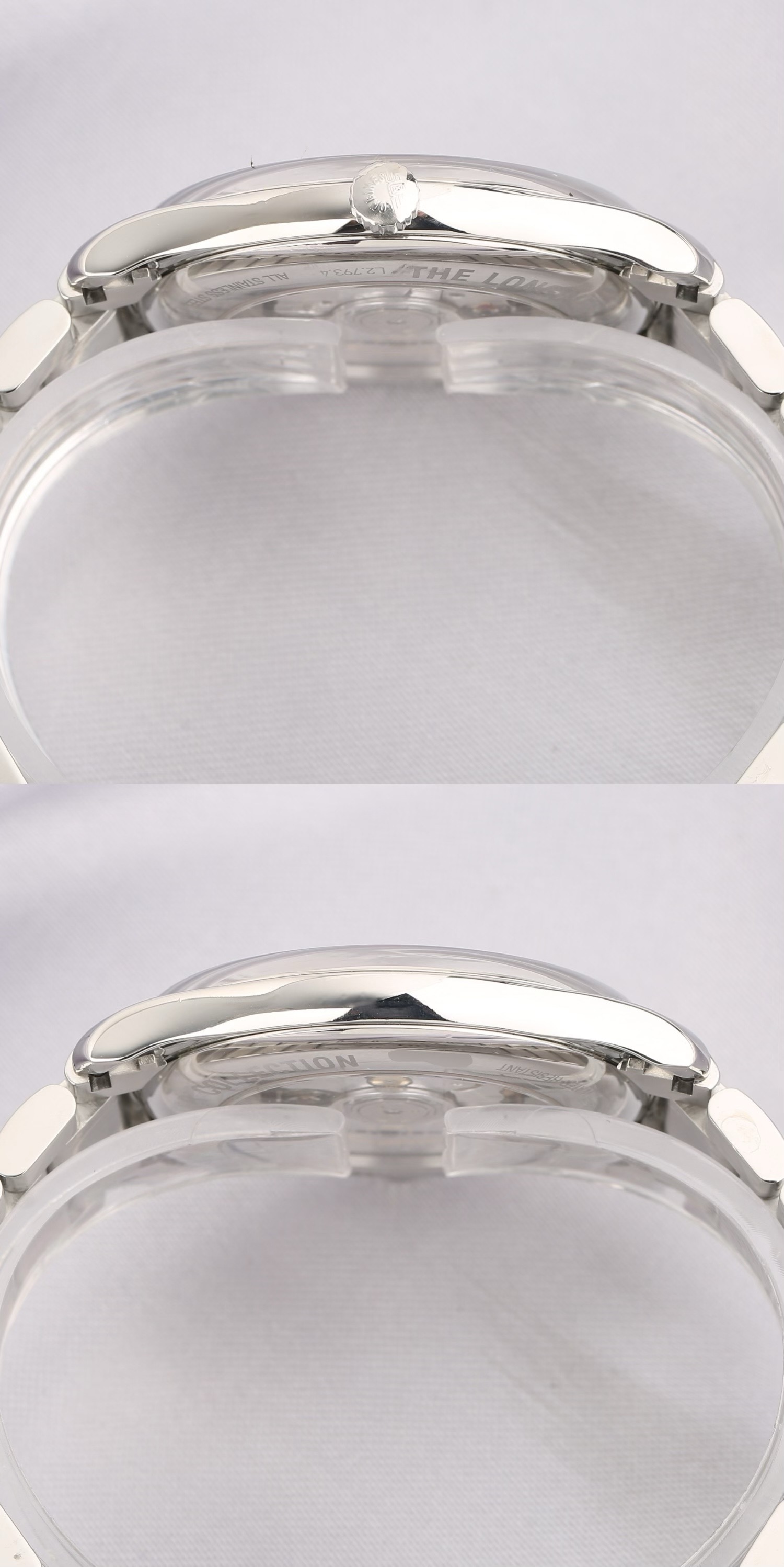 表盘材质:钻石时标,镶嵌13颗顶级韦塞尔顿VS-SI级钻石,总重0.059克拉。