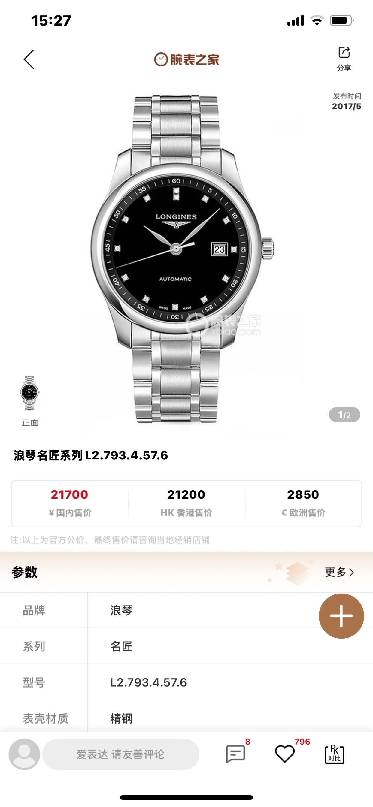 浪琴 新款镂空机芯 18年购买全套 总重126.41克