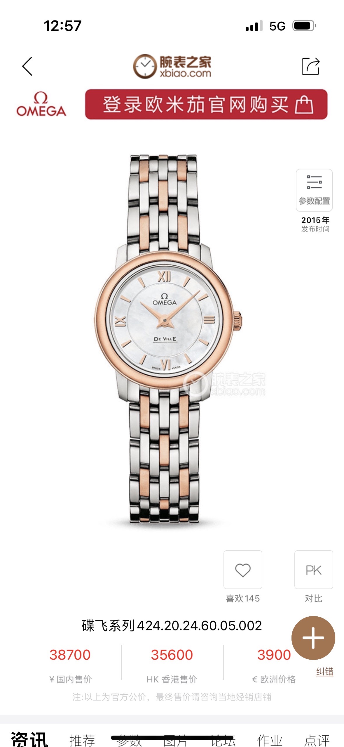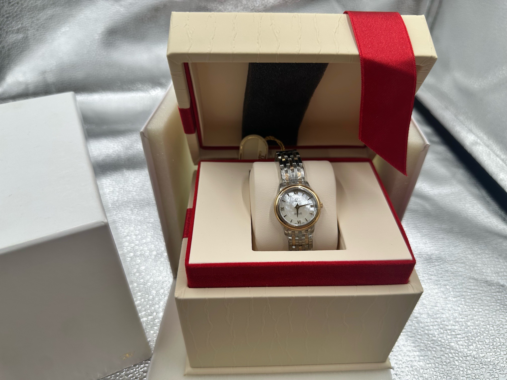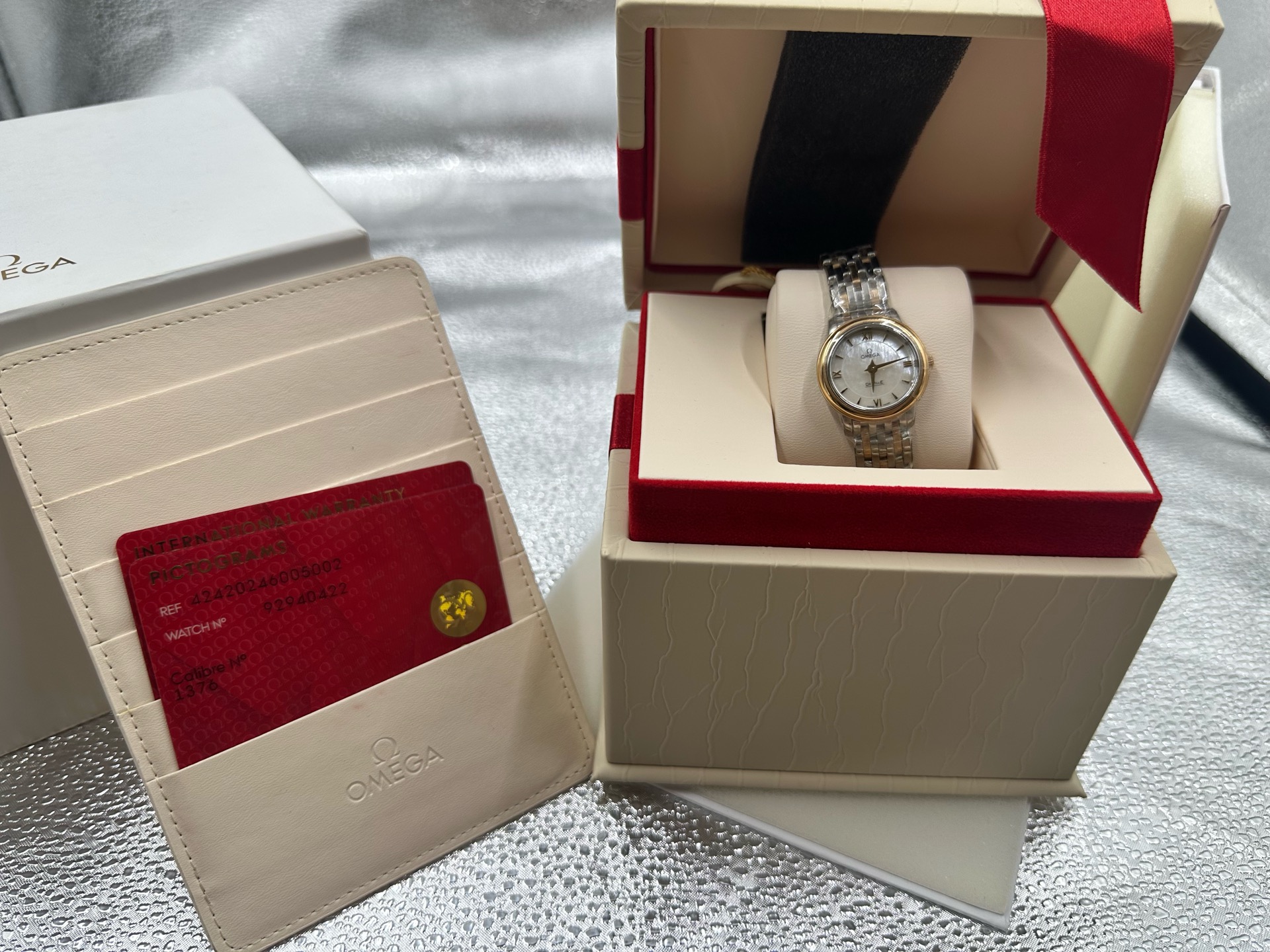 欧米茄/Omega 碟飞系列 424.20.24.60.05.002 石英机芯 精钢‑红金 24.4 专柜价38700,全新全套好价秒发,25年7月