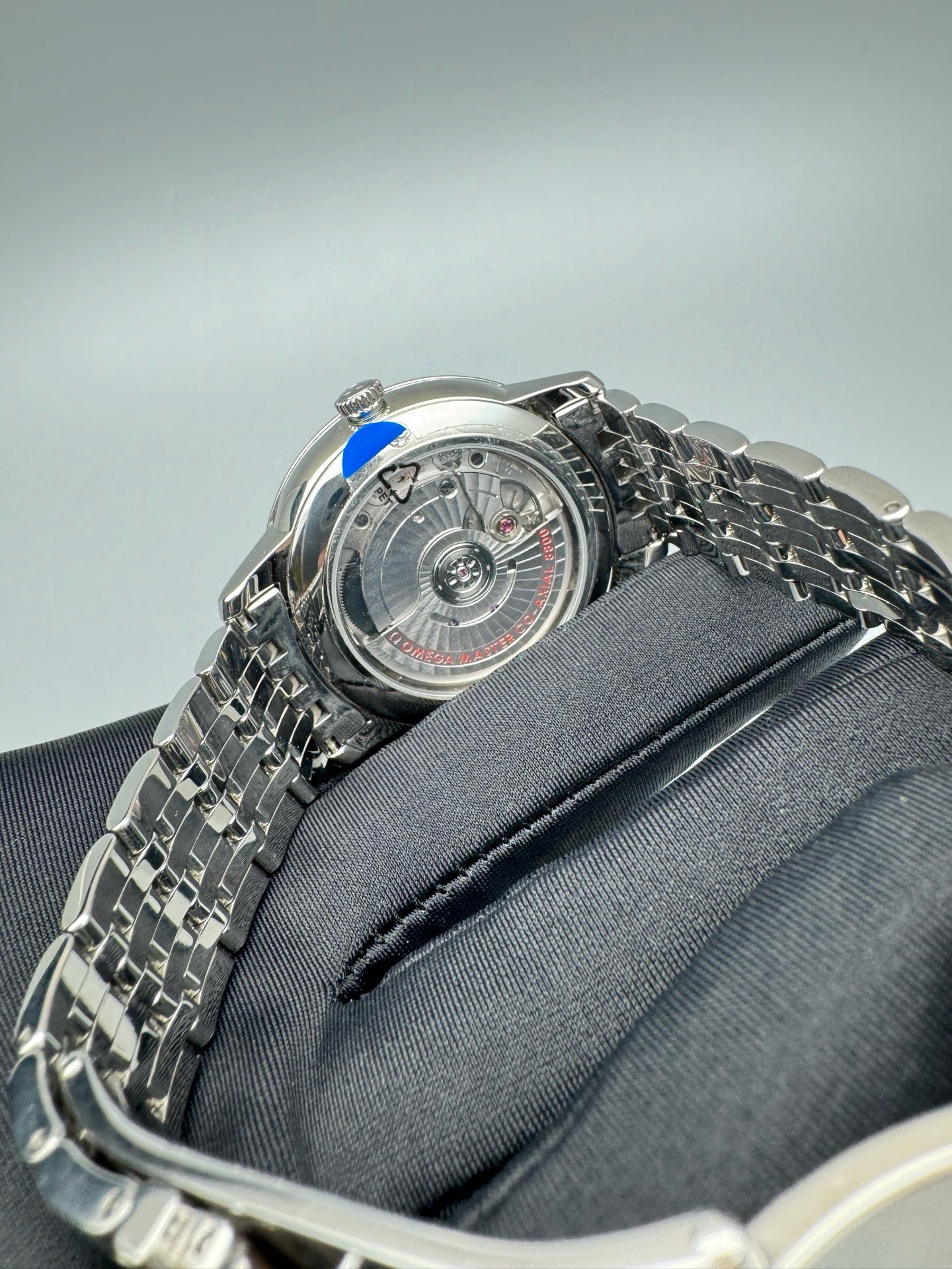 二手新全套,表径40毫米,采用8800机芯,动储55小时,防水30米,有日期显示防磁功能,公价39700