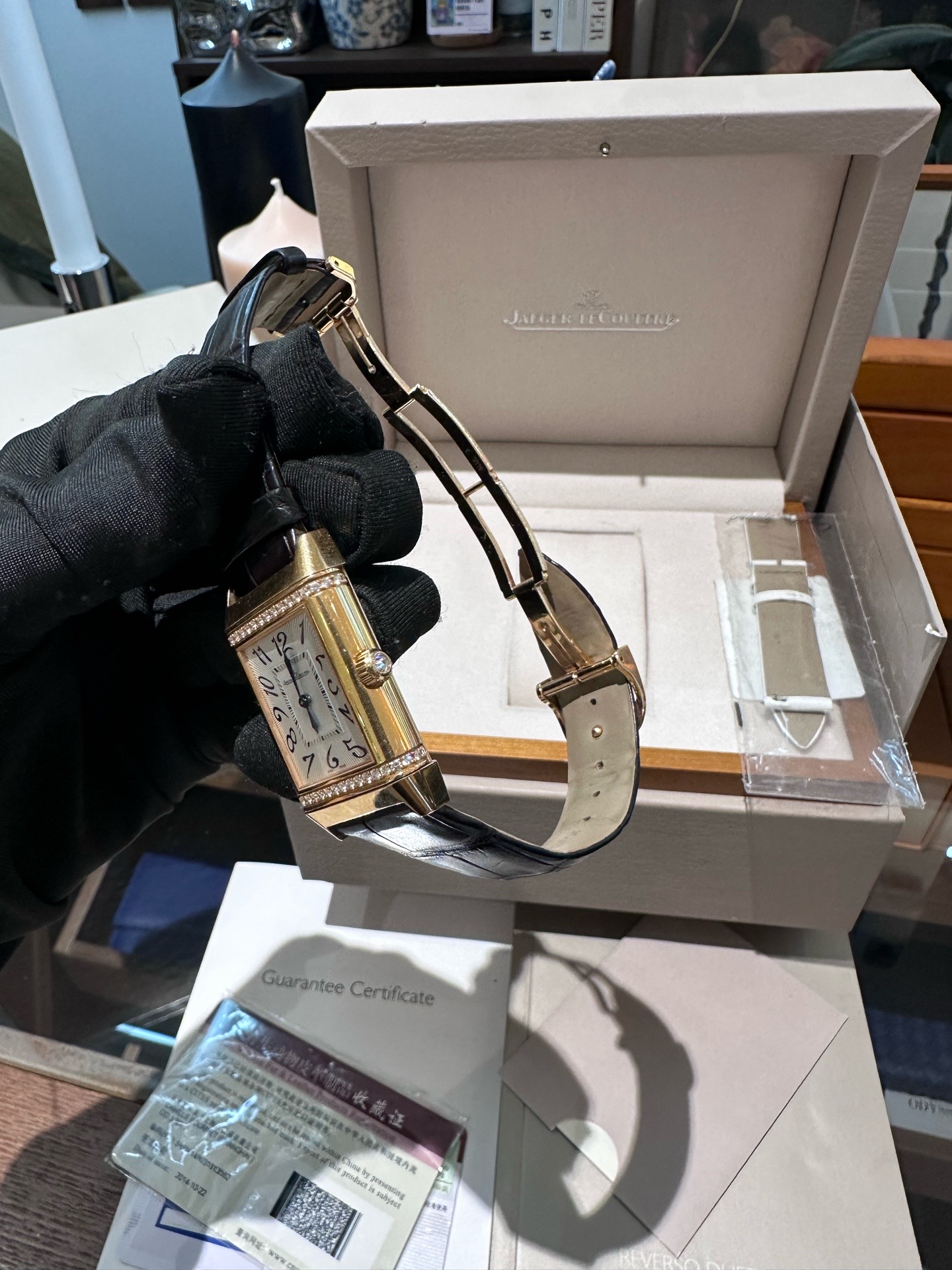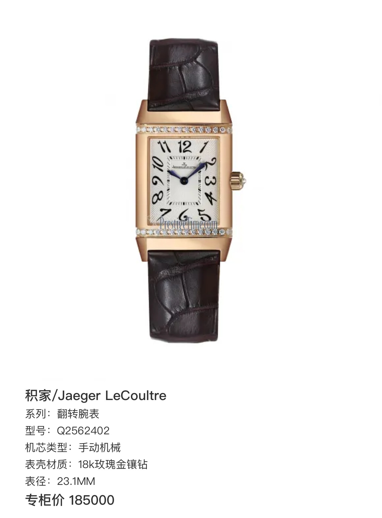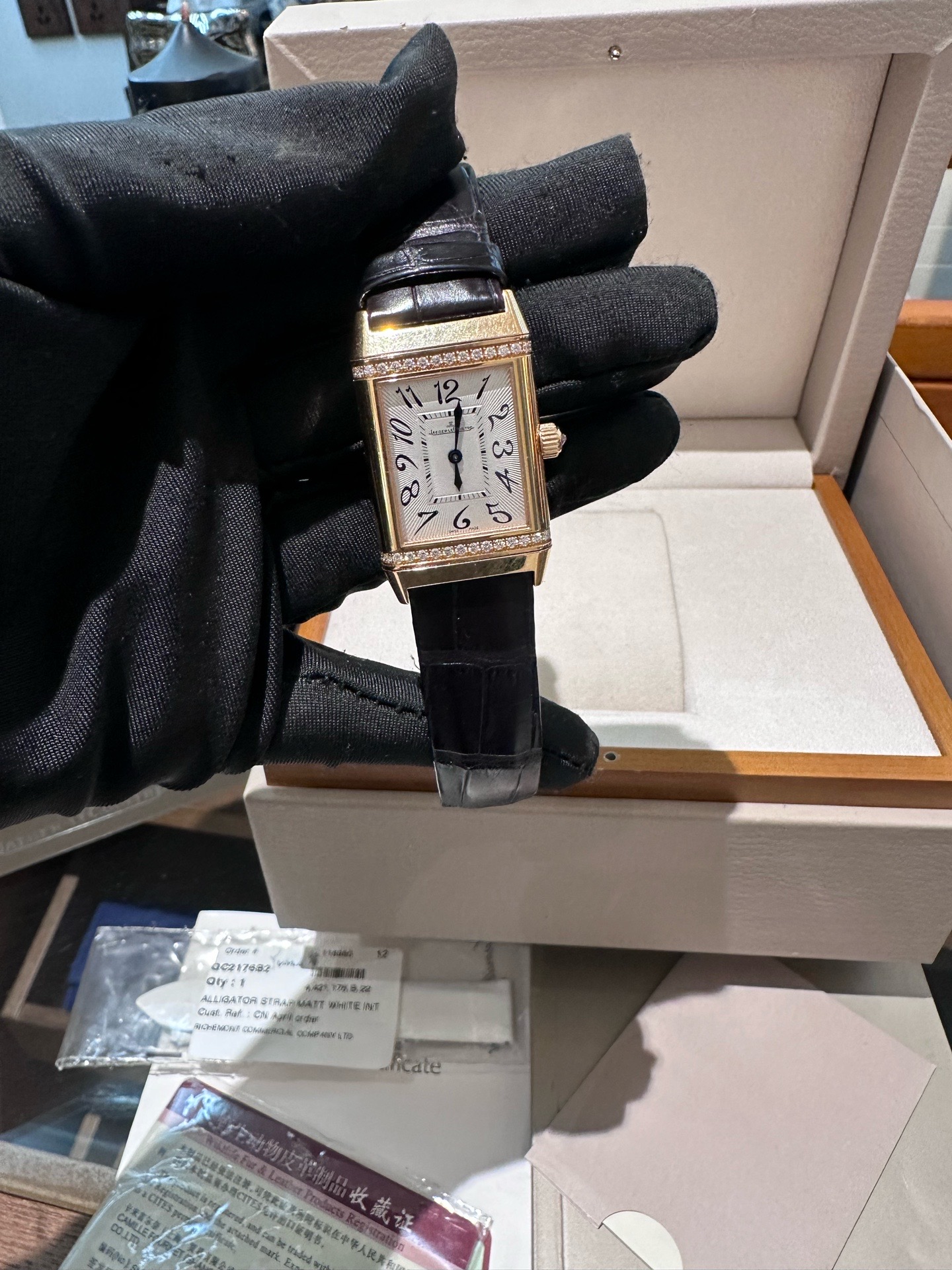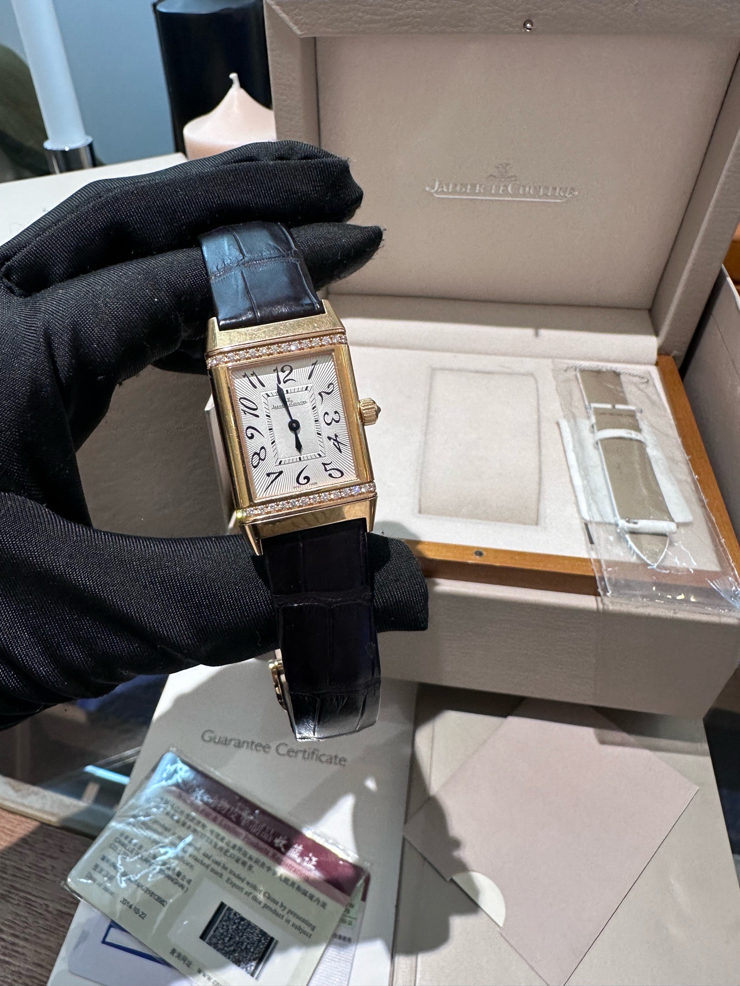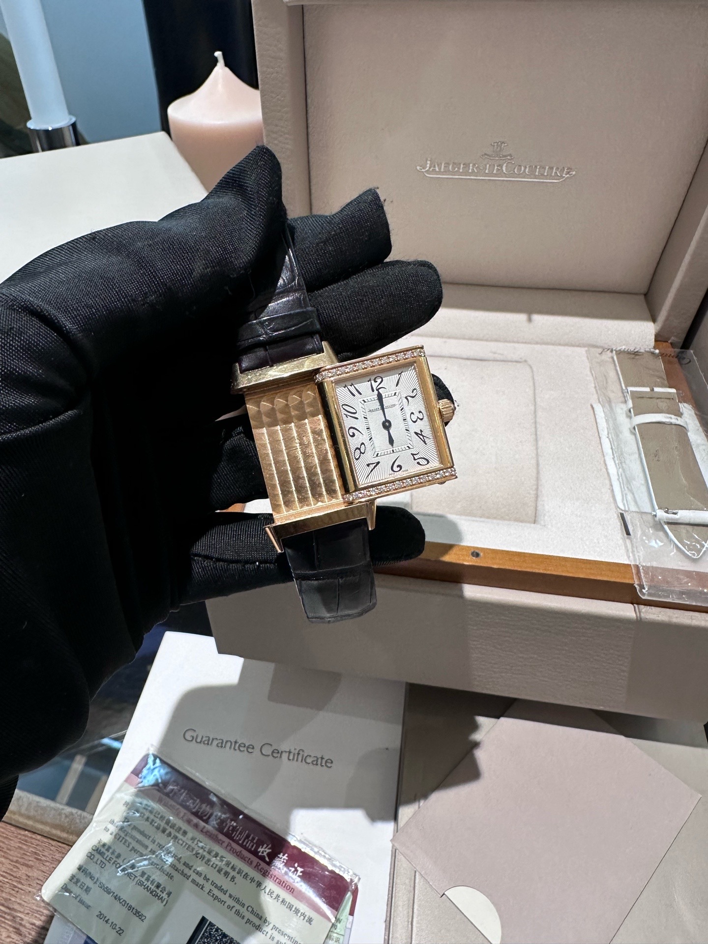 积家/Jaeger LeCoultre 翻转腕表 Q2562402 手动机械 18k玫瑰金镶钻 23.1MM 15年大全套 附件未使用替换表 保卡说明书 精致小巧 一块表两个盘 任意搭配 专柜价185000 现店内好价